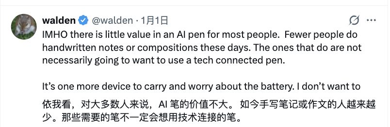 有的网友可毫不留情,觉得现在大家几乎都不怎么用笔写字了,搞这么个产品可能白搞: