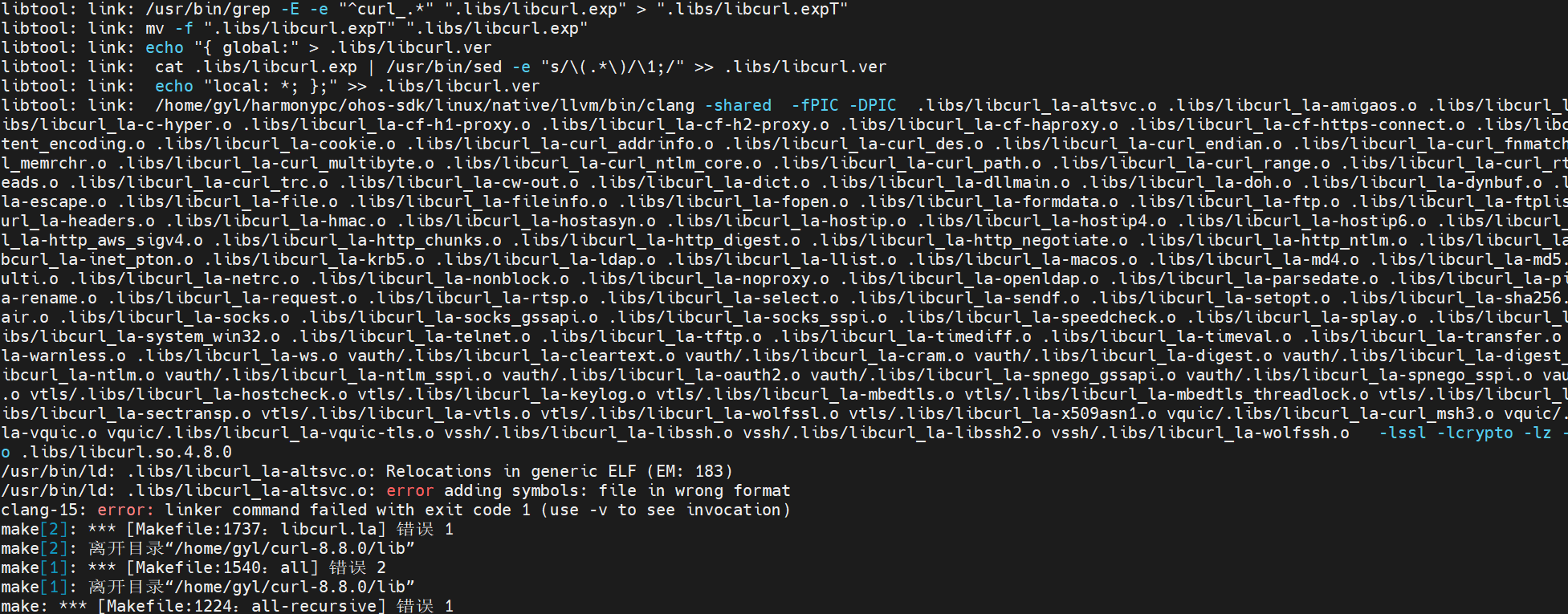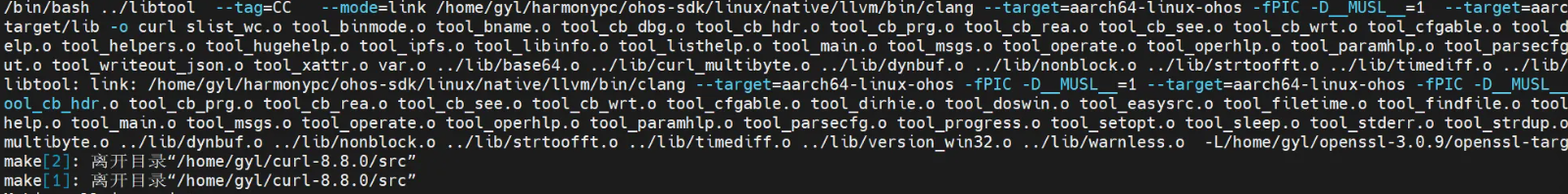 编译鸿蒙PC版的curl时,configure已经顺利通过,但是执行make命令编译时,最后链接阶段遇到如下报错: