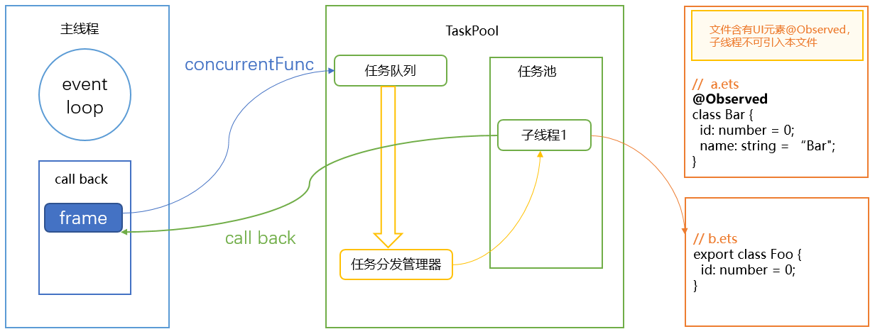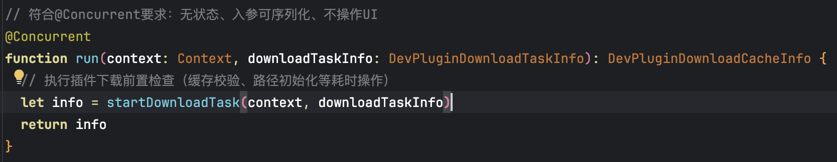 注意:该函数需满足「无状态、参数可序列化」,不能直接操作 UI(如修改 @State 变量、调用 UI 组件方法)。