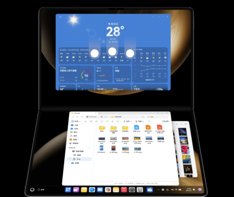 从界面上看,鸿蒙PC的桌面设计很现代化,任务栏在底部,开始菜单在左下角。整体风格有点像Windows 11和macOS的结合体,但有自己的设计语言。