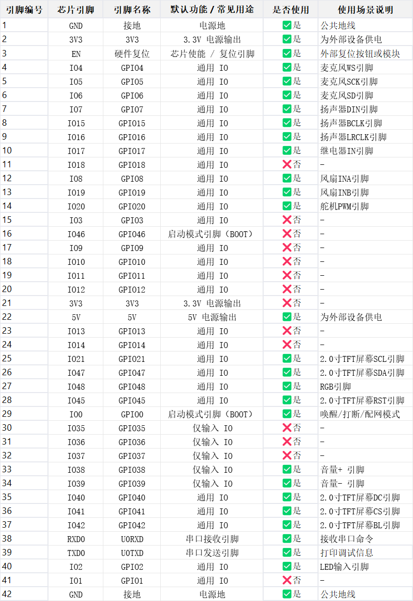 1.5 ESP32-S3引脚使用状态表