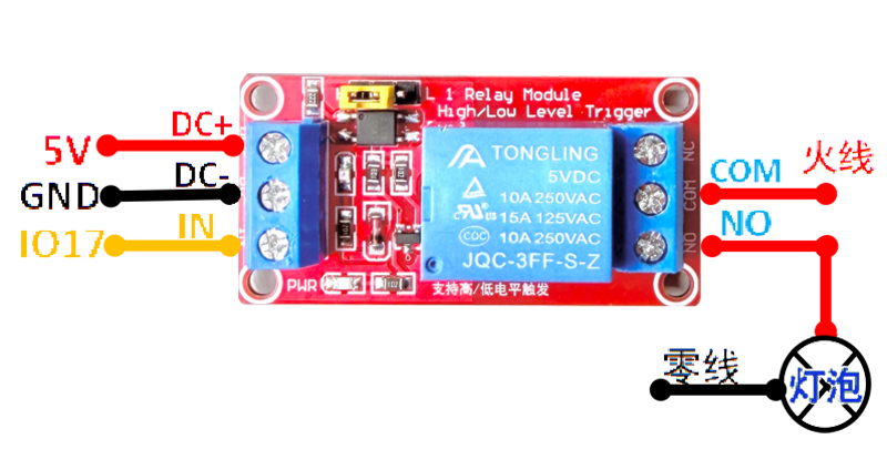 | IO17 | 继电器IN口 | 控制继电器吸合 | GPIO_NUM_17 |