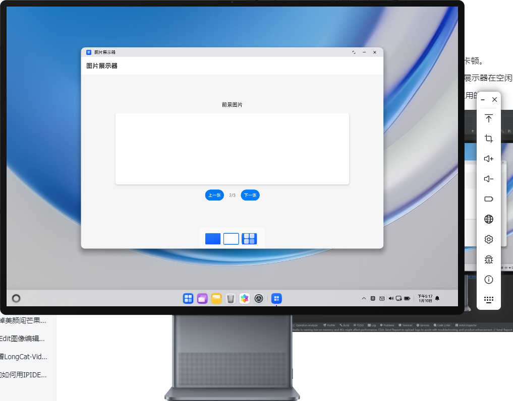 - 渲染效率:ArkUI 在 PC 端的渲染帧率稳定,图片切换无卡顿。