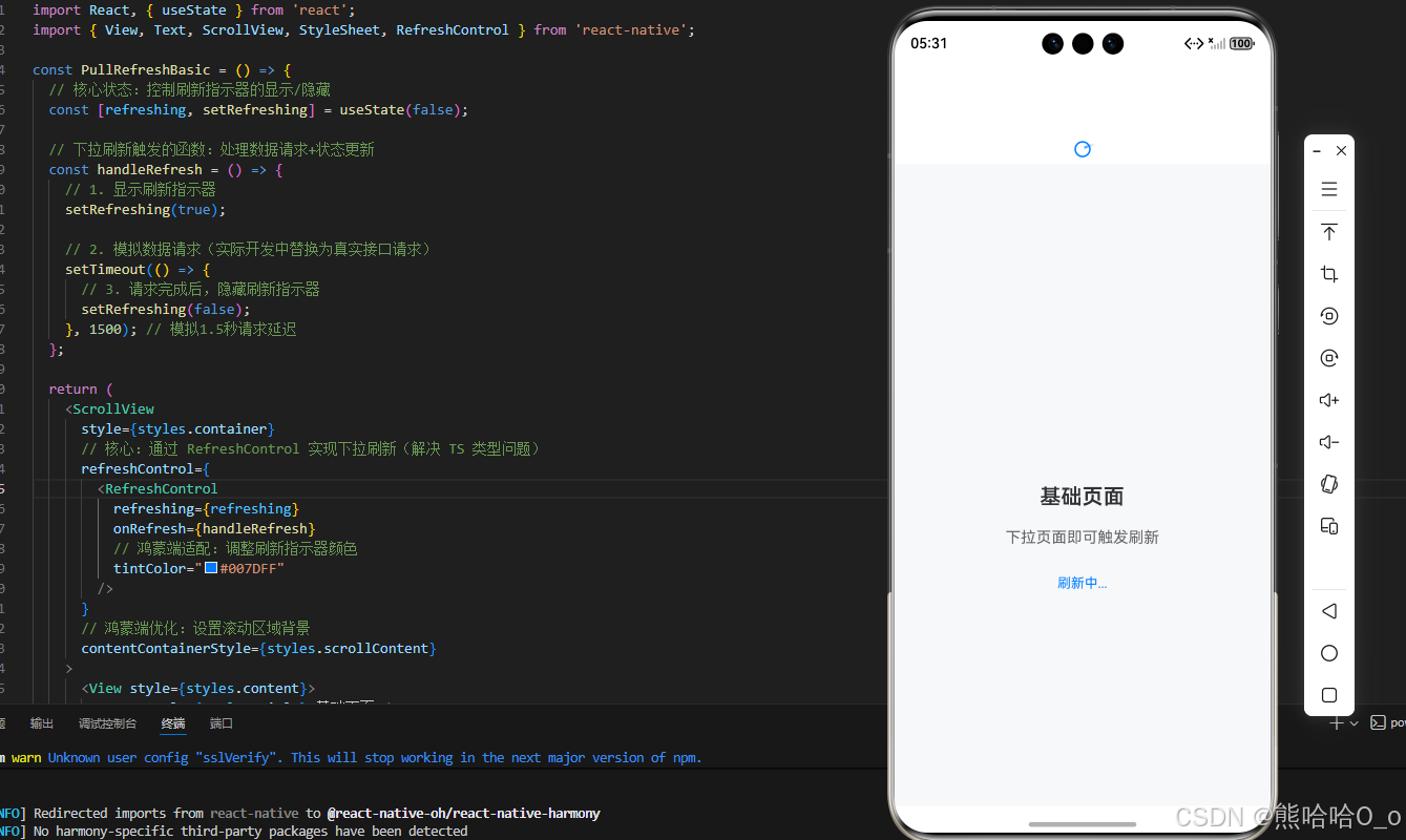 React Native 鸿蒙跨平台开发:下拉刷新功能