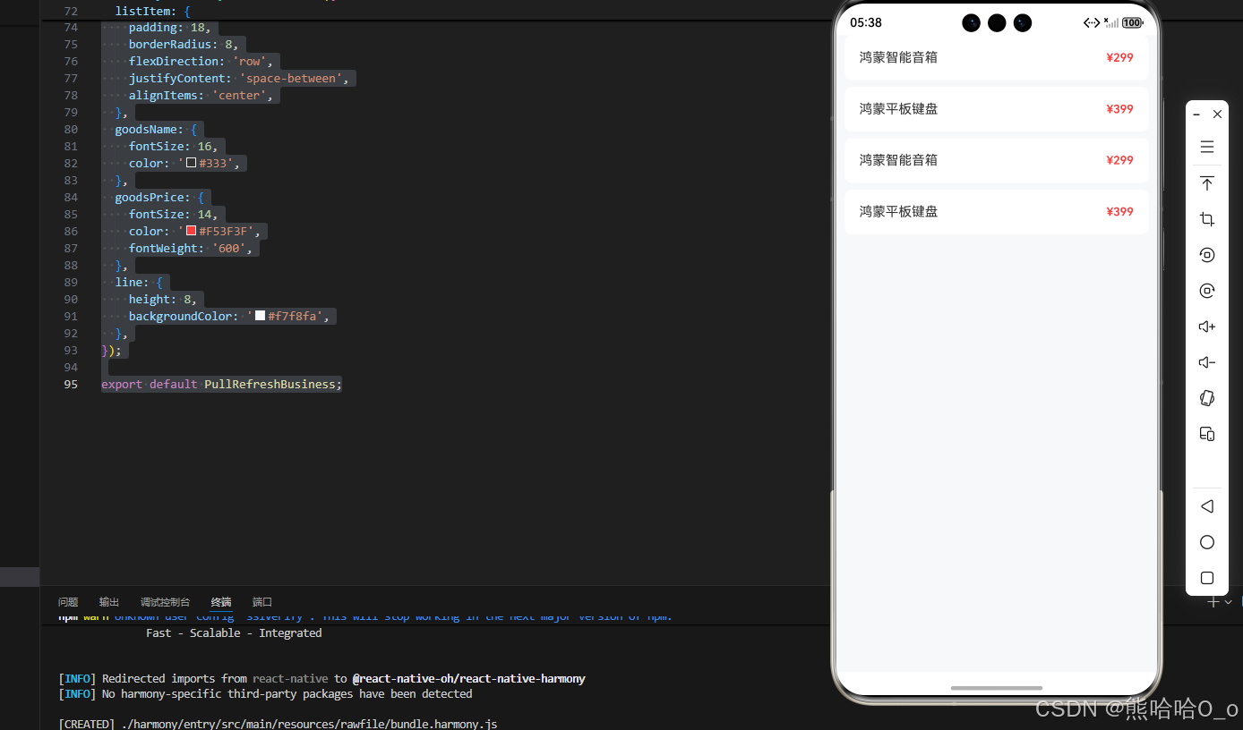 下拉刷新的实现逻辑极简,0 基础只需记住 RefreshControl 的这两个核心属性,这是实现功能的全部关键,无其他复杂配置: