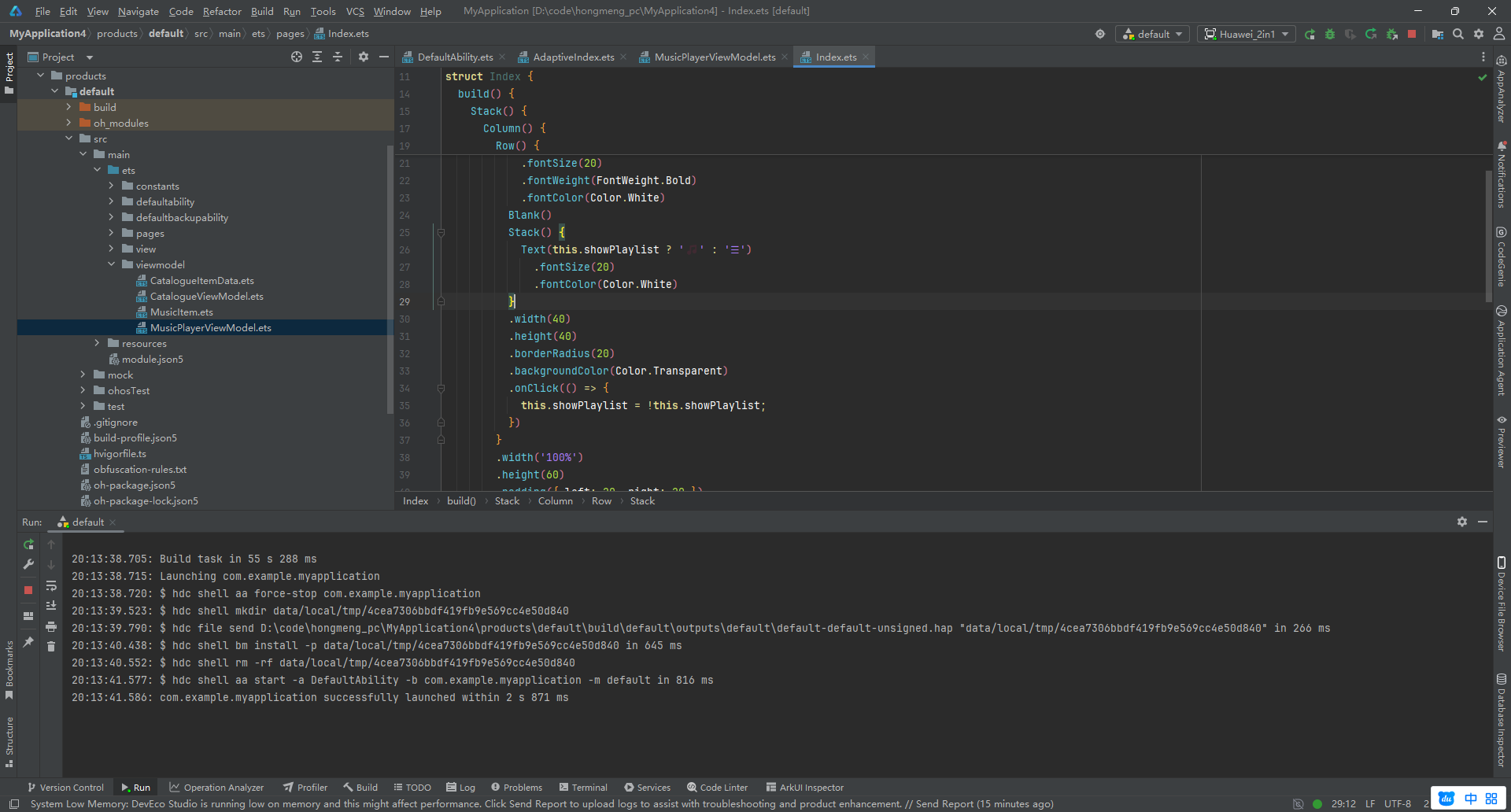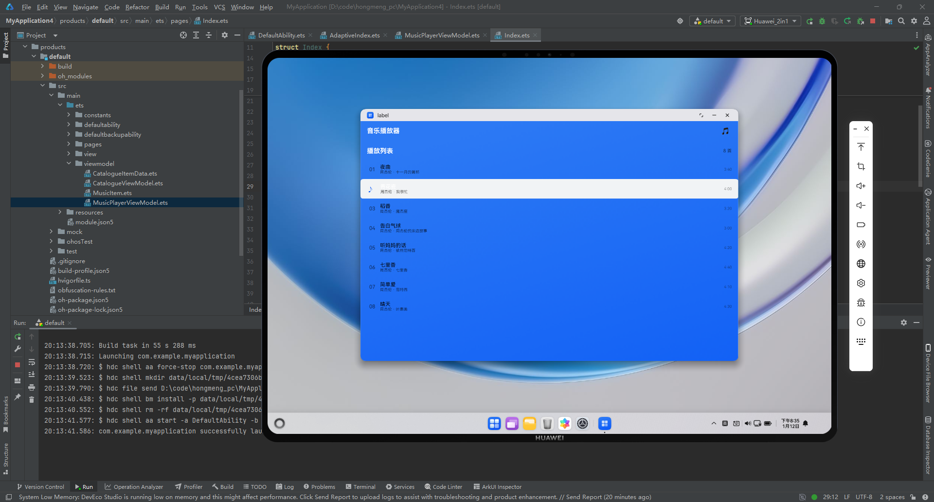 在完成了从底层数据模型到多端适配 UI 的编码后,最激动人心的环节莫过于在 DevEco Studio 提供的 鸿蒙PC运行环境 中进行实机验证。为了确保软件在桌面端的“生产力”表现,我们从界面响应、多端适配逻辑以及后台性能三个维度进行深度演示。