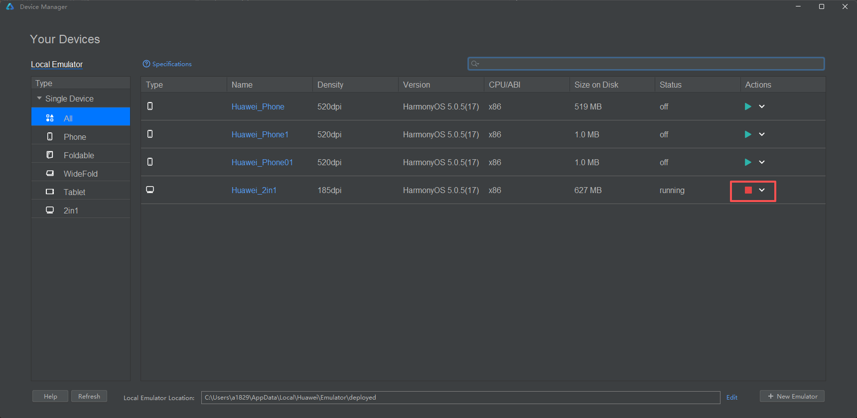 在 DevEco Studio 中启动 鸿蒙 PC 运行环境: