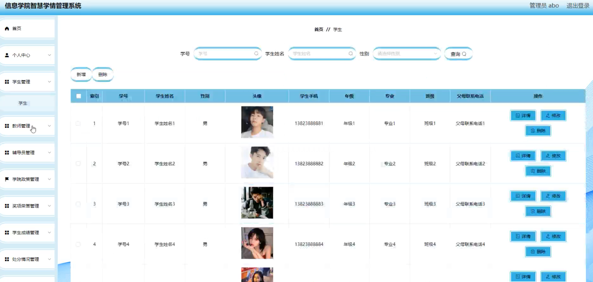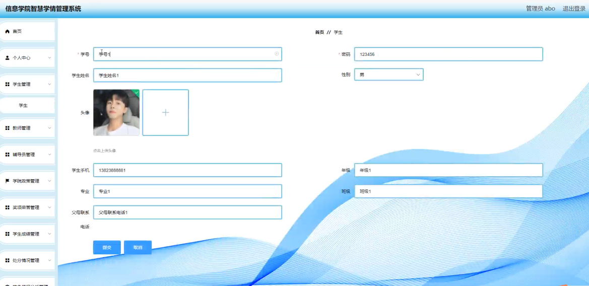- 学生信息管理:支持学生基本信息、课程成绩、考勤记录的增删改查。