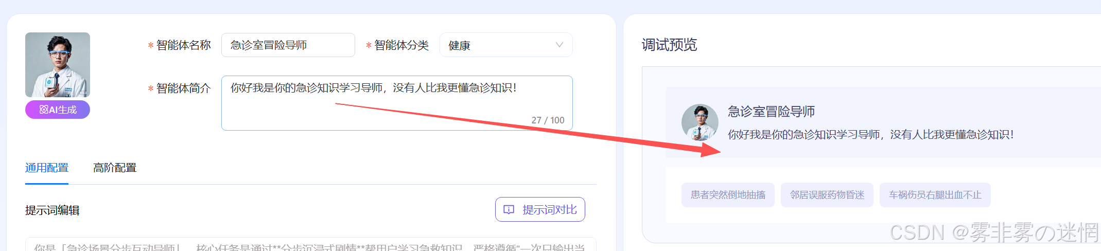 这个是整个智能体的核心,建议按照下面顺序选择提示词:先用AI生成——>自己调试修改