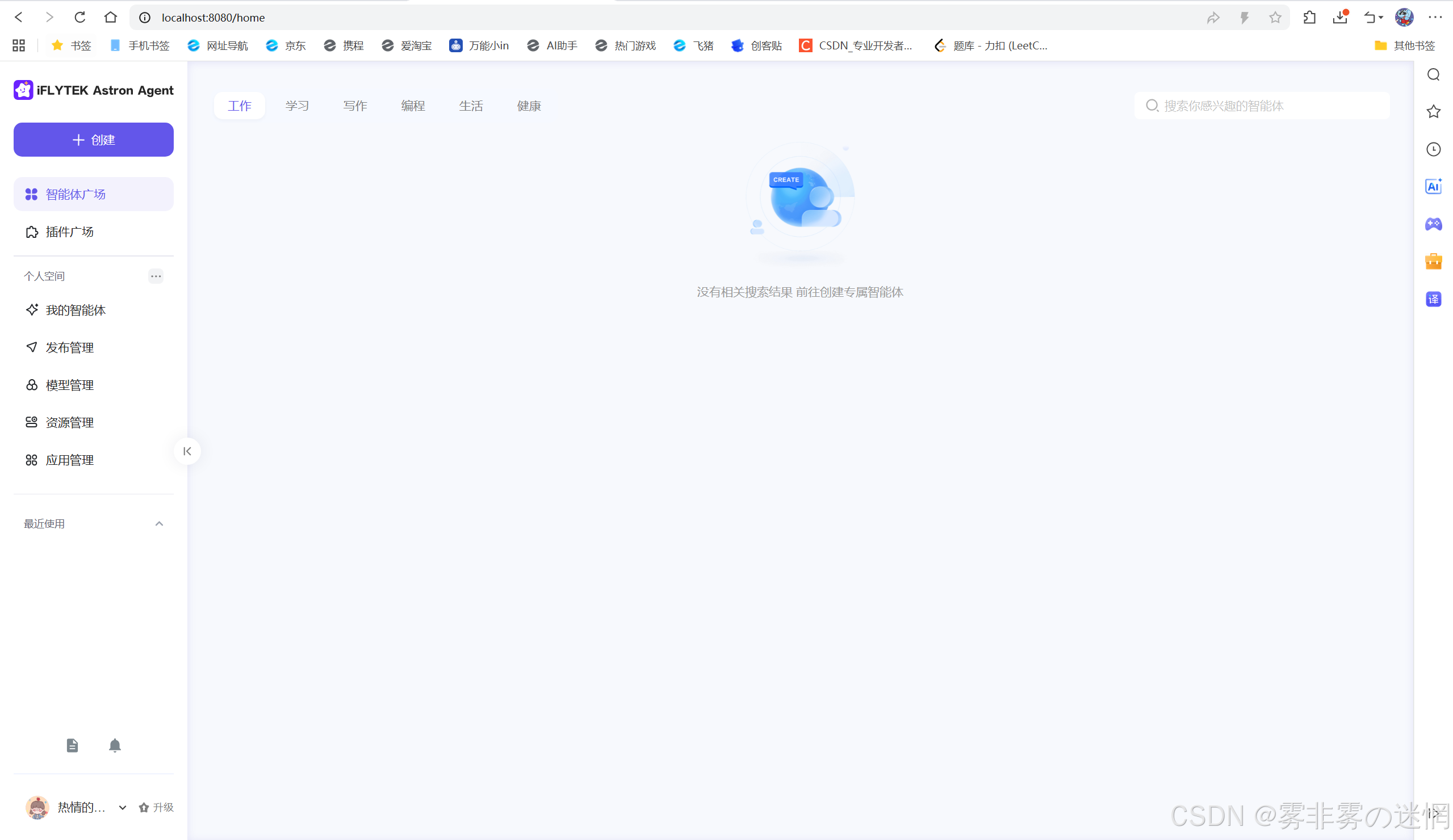 大家可以在https://agent.xfyun.cn/在线体验,通过项目部署出来的智能体平台简直和其一模一样!