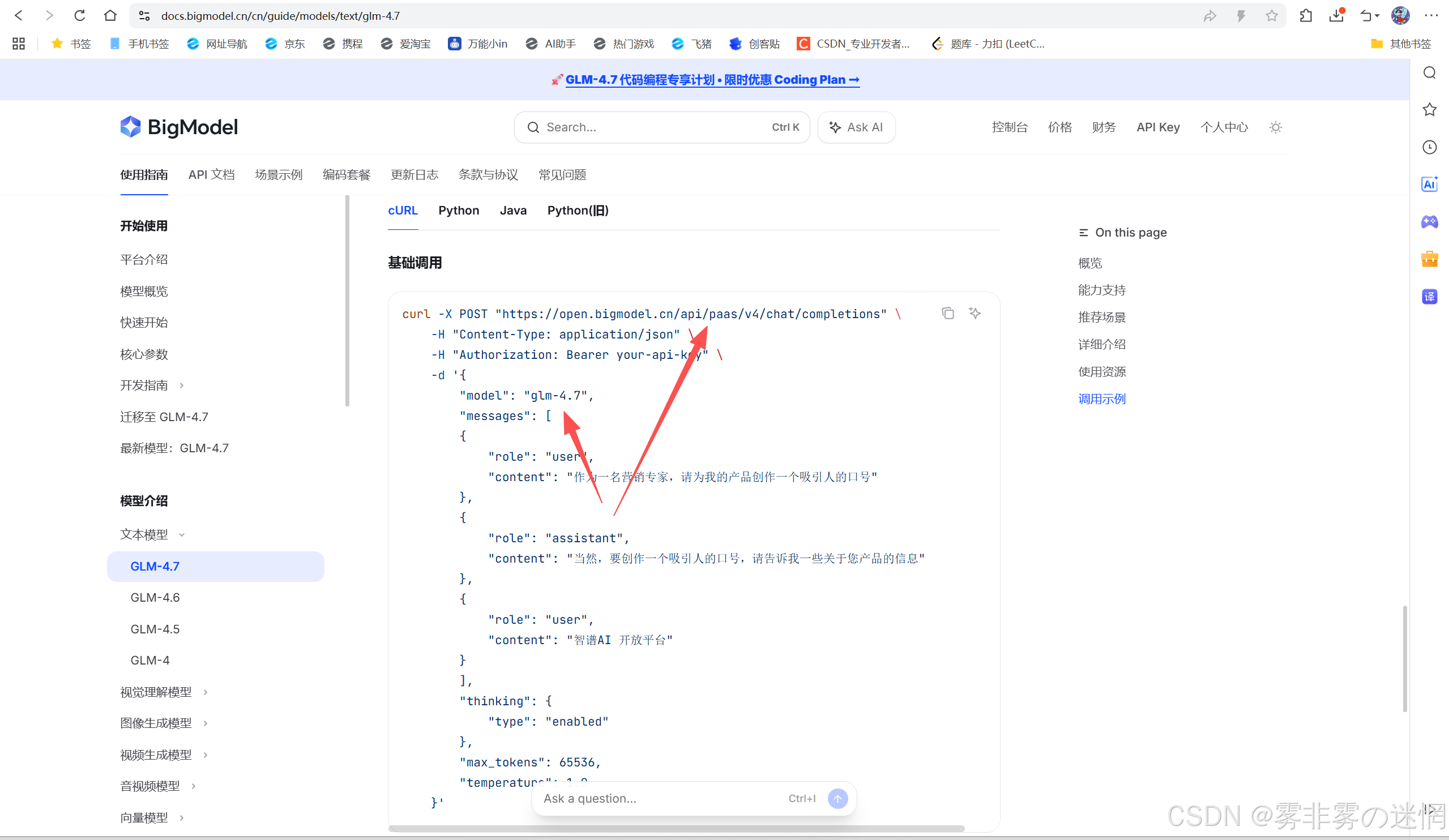 打开自己喜欢模型开发文档:就可以看见访问地址和描述字段,再获取对应的API Key即可添加
