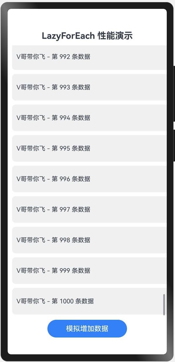 API 21 下,必须要用 LazyForEach(懒加载)。它的核心逻辑是:只渲染屏幕可见的那几个 Item,你滑下来一个,我再创建一个,滑上去销毁一个。内存占用极低,丝般顺滑。