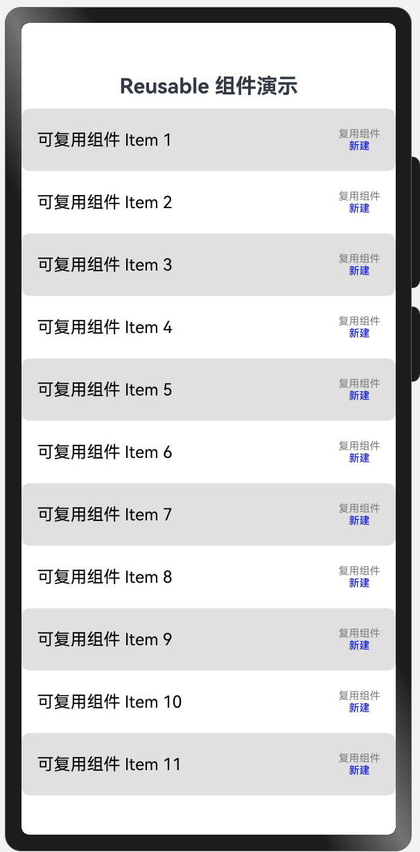 API 21 提供了一个非常强力的装饰器:@Reusable。它的作用是:组件不从树上卸载,而是回收到缓存池里,下次需要的时候直接拿过来改个数据接着用。这简直是“物尽其用”的典范!
