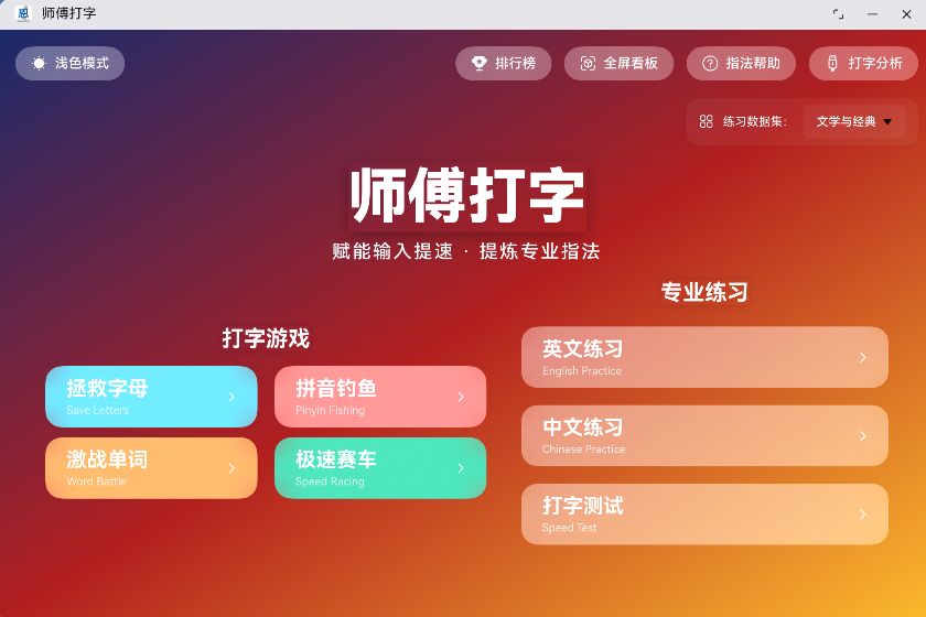 师傅打字 设计初衷: 在这个数字化时代,键盘已成为我们思维的延伸。无论是深夜敲击的代码,还是忙碌时回复的邮件,打字的速度与准度往往决定了灵感的流淌是否顺畅。“师傅打字”诞生的目的很简单:让枯燥的指法练习变成一场指尖上的审美旅程,让每一次敲击都充满意义。