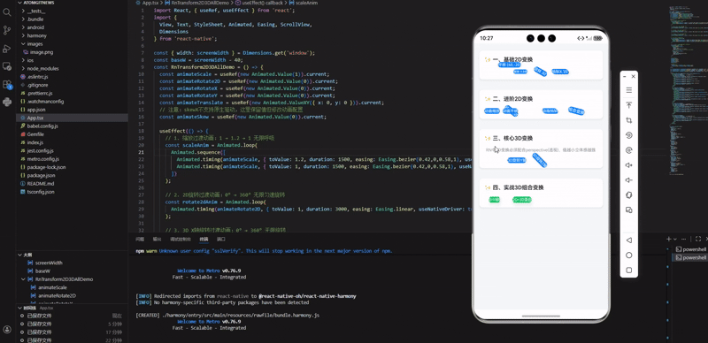 React Native 为我们提供了一套完整的 transform 变换属性,这套属性在鸿蒙端完全兼容,也是开发动效的基础,所有变换属性均以数组形式配置,支持多属性组合叠加生效,核心分为「基础 2D 变换」和「进阶 3D 变换」两大体系。