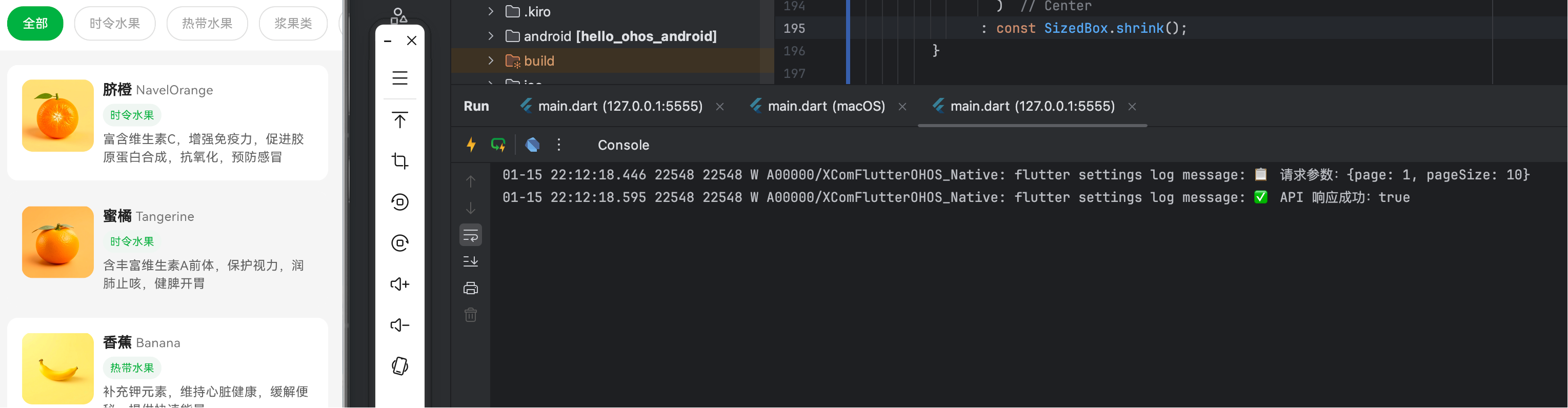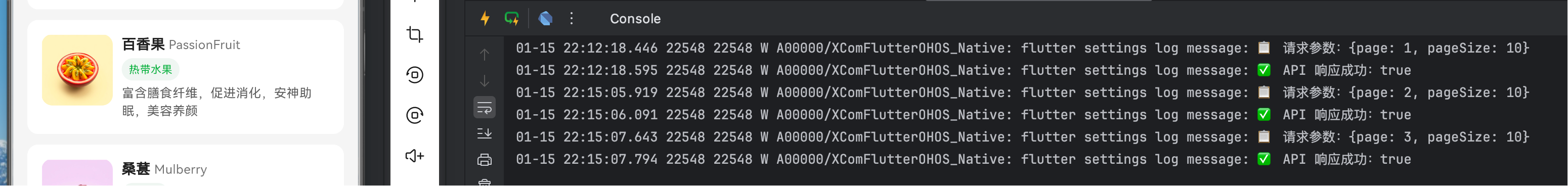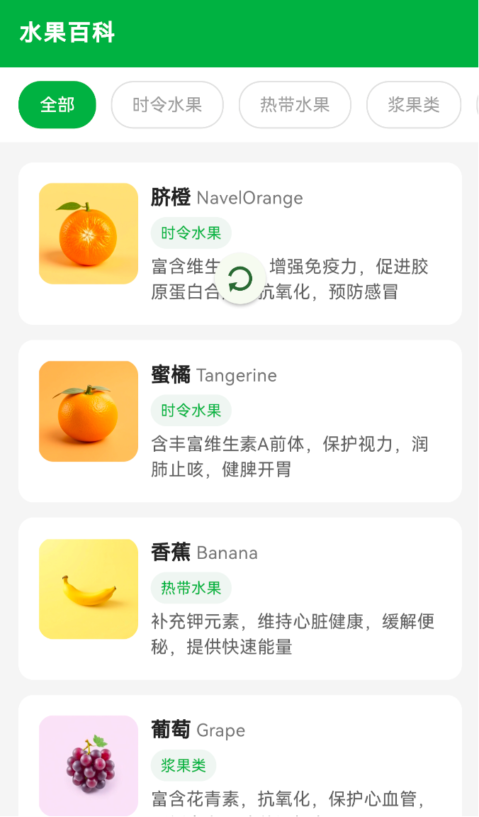 介绍了为解决接口数据不足问题而采用的新接口设计方案,该接口支持分页查询水果信息,包含页码、每页数量和水果类别三个参数。详细说明了接口返回的数据结构,包括水果基本属性、营养成分和功效等信息。重点阐述了在鸿蒙手机上使用Flutter实现下拉刷新和上拉加载功能的代码实现,通过RefreshIndicator组件和分页逻辑控制数据加载,当刷新时重置页码并替换列表,加载更多时追加数据。