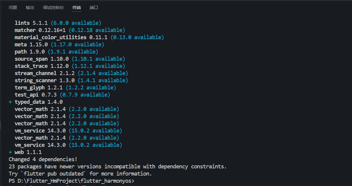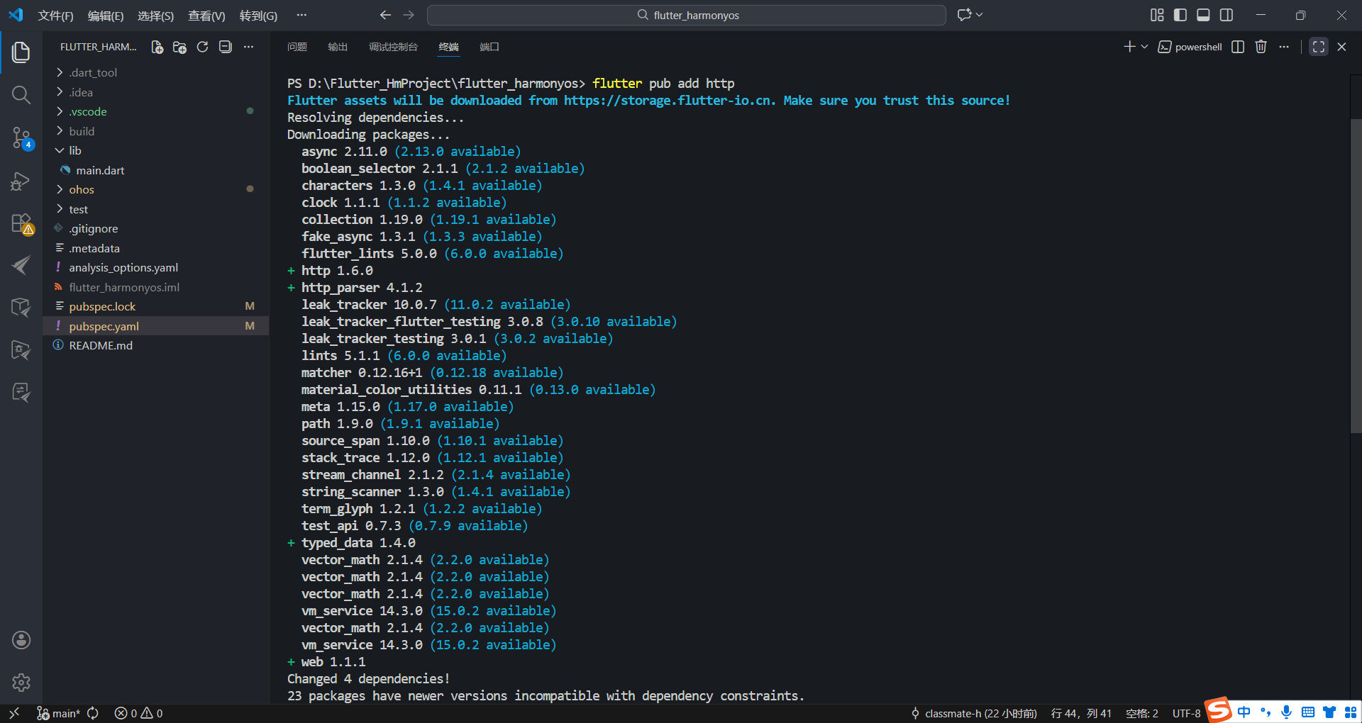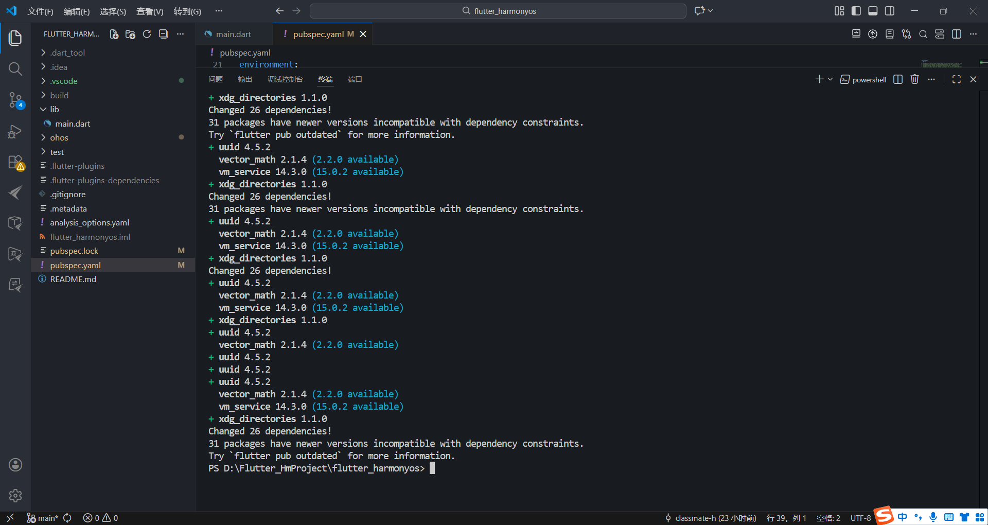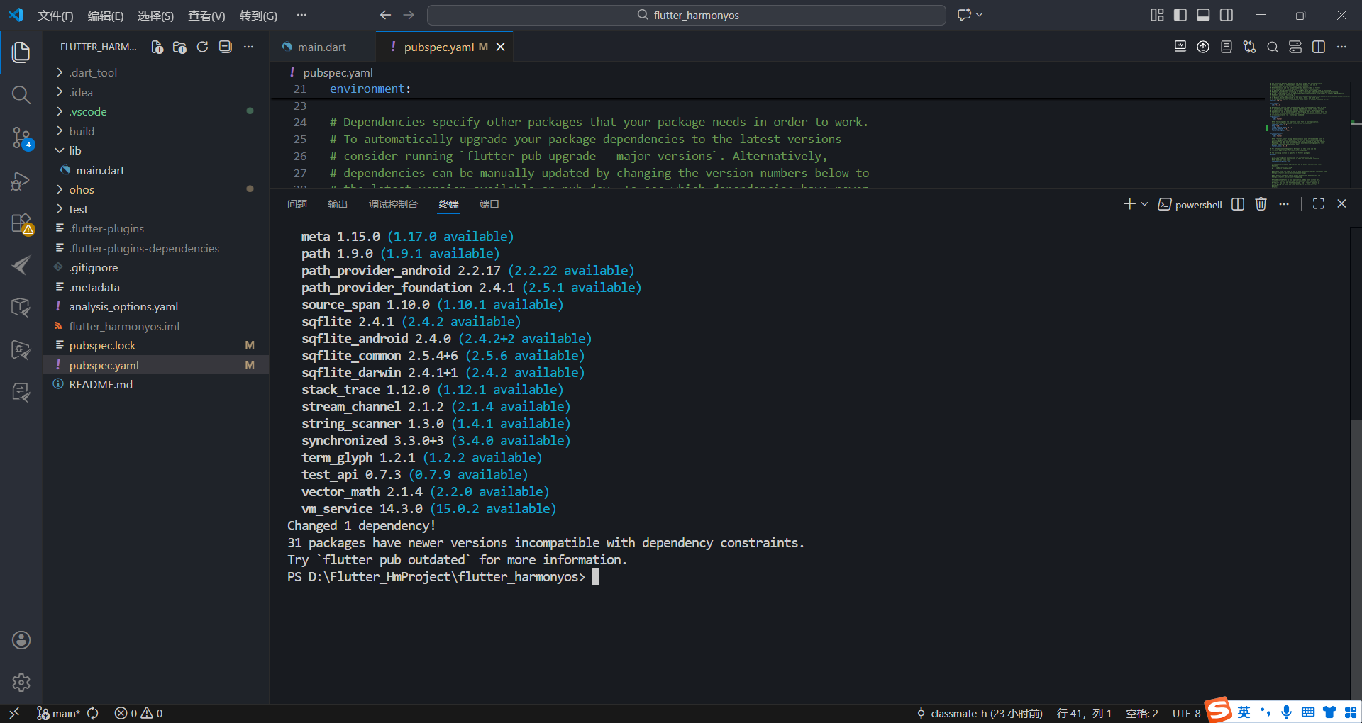 依赖生效:执行 flutter pub get 命令确保无鸿蒙适配报错。