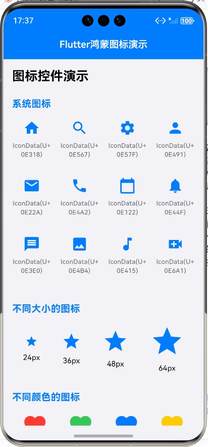 鸿蒙操作系统对应用UI有严格的设计规范,包括图标设计。在鸿蒙平台上开发Flutter应用时,Icon控件需要满足以下要求: