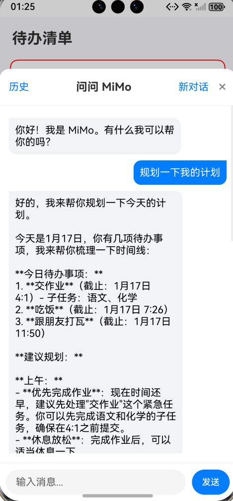 效果:当用户问“规划一下今天的安排”,AI 会直接回答:“你今天下午 2:00 有个作业要交,建议先处理这个,然后再去……”