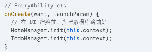 为了避免用户进入首页看到“数据闪烁”或“白屏”,我在 EntryAbility 的系统启动阶段就完成了脏活累活。