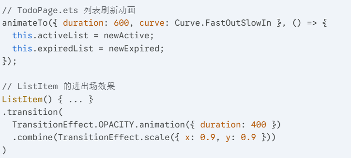 我利用 ArkUI 的 animateTo 和 TransitionEffect,让列表的增删、展开都有了物理世界的惯性。