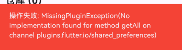 ❌️Flutter 官方 Pub 仓库发布的 shared_preferences 包(如 shared_preferences: ^2.2.3),只适配了 Android、iOS、Web、Windows、macOS、Linux 六大平台,完全没有适配鸿蒙 (OpenHarmony) 系统。所以官方版缺少鸿蒙端的原生实现,运行时找不到getAll方法的平台代码,才会抛出MissingPluginException。