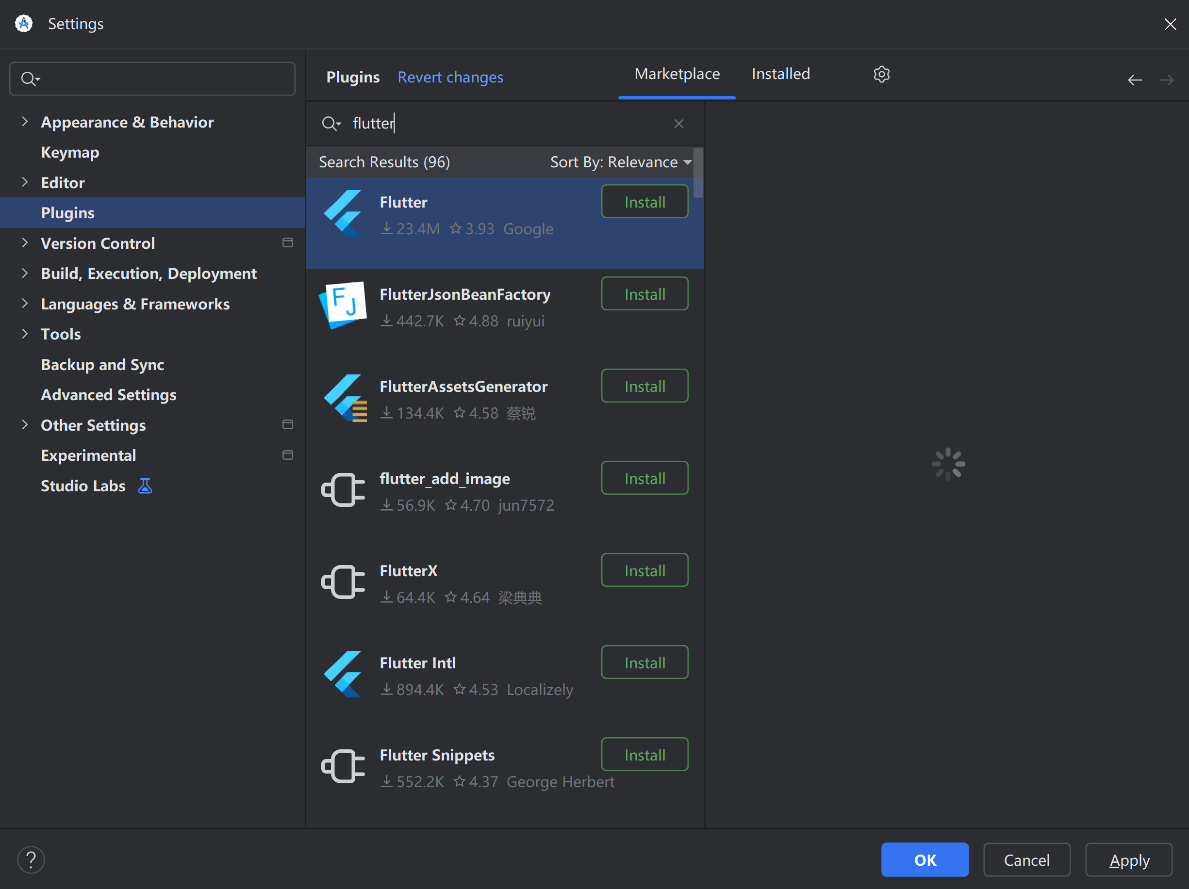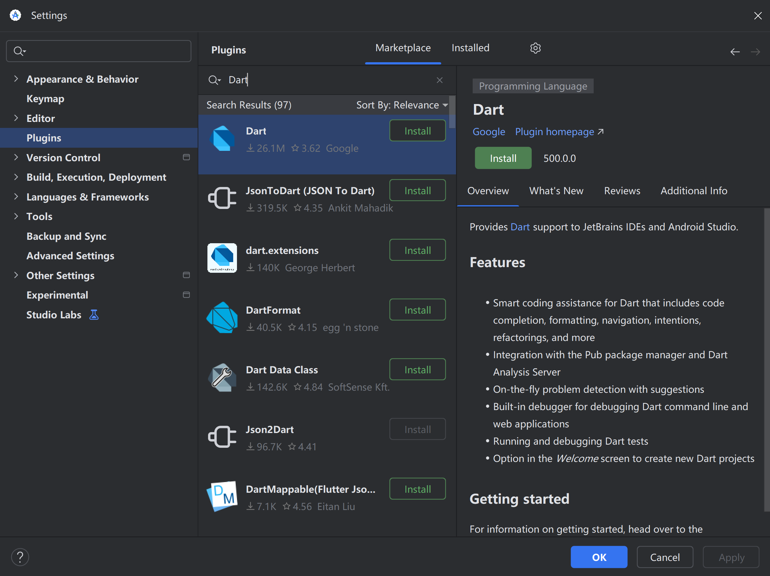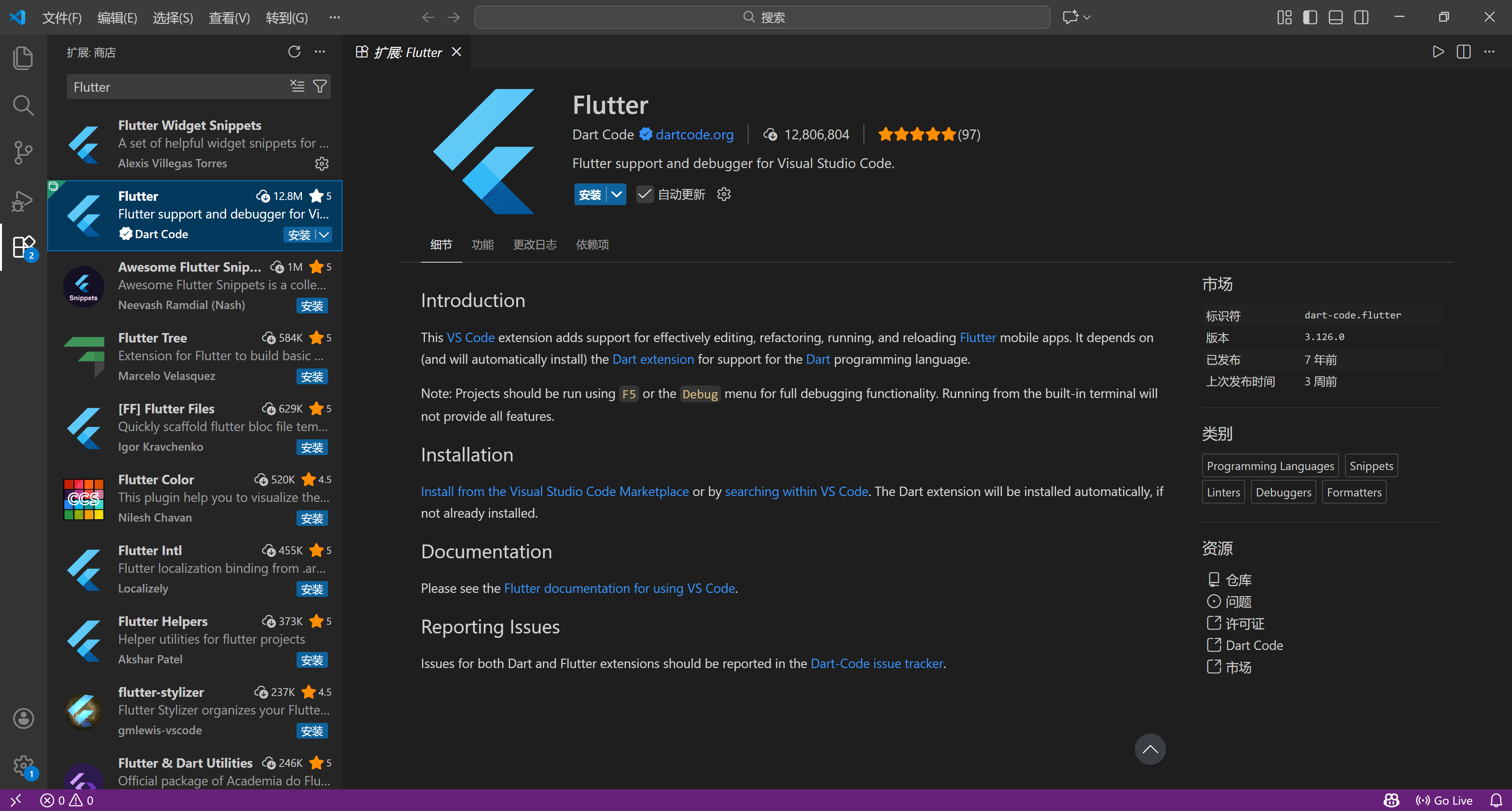 下载安装好Dart、Flutter插件