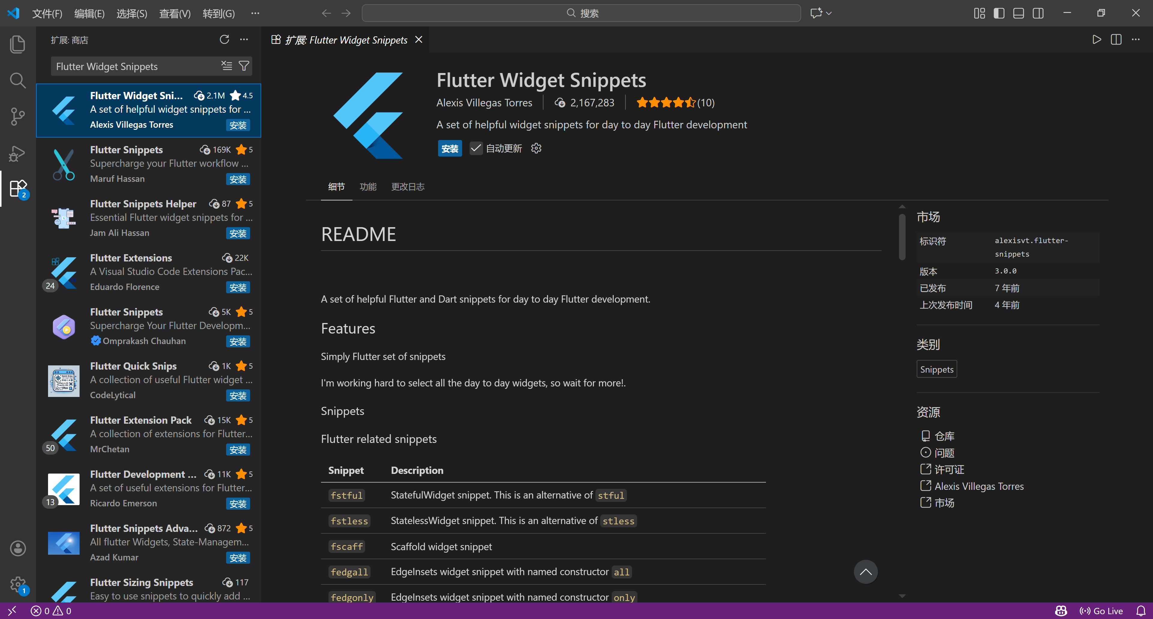 - Flutter Widget Snippets:提供 Flutter 组件代码片段,快速生成常用控件;