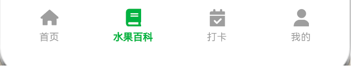开始之前 我们需要准备8张底部导航栏图片,分别代表首页,水果百科,打卡,我的。