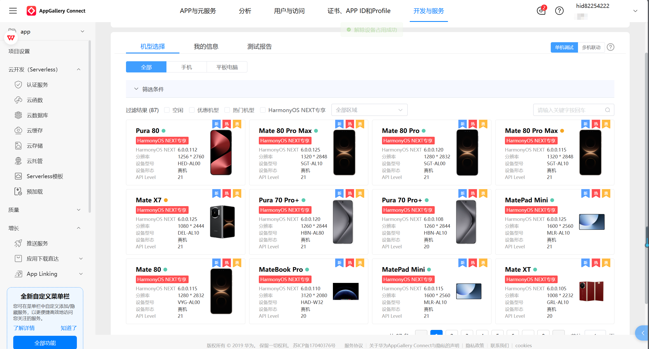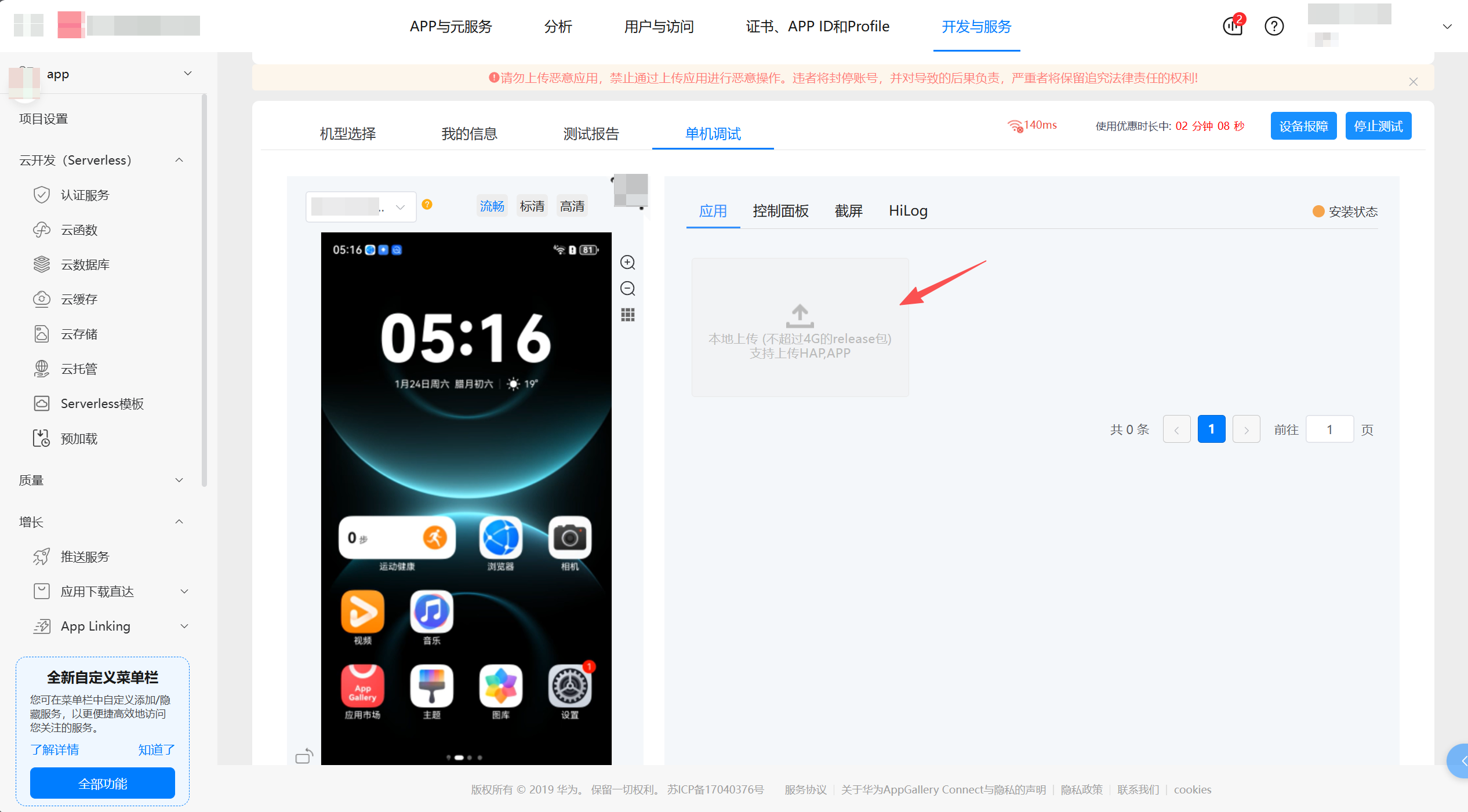 我用WSL 2 + 远程模拟器解决,但没成功。虽然他可以显示,但一直运行不了。然后我用这个华为官方的在线云调试然后选一个机器,然后把APP传上去测试最后会把运行结果显示出来。