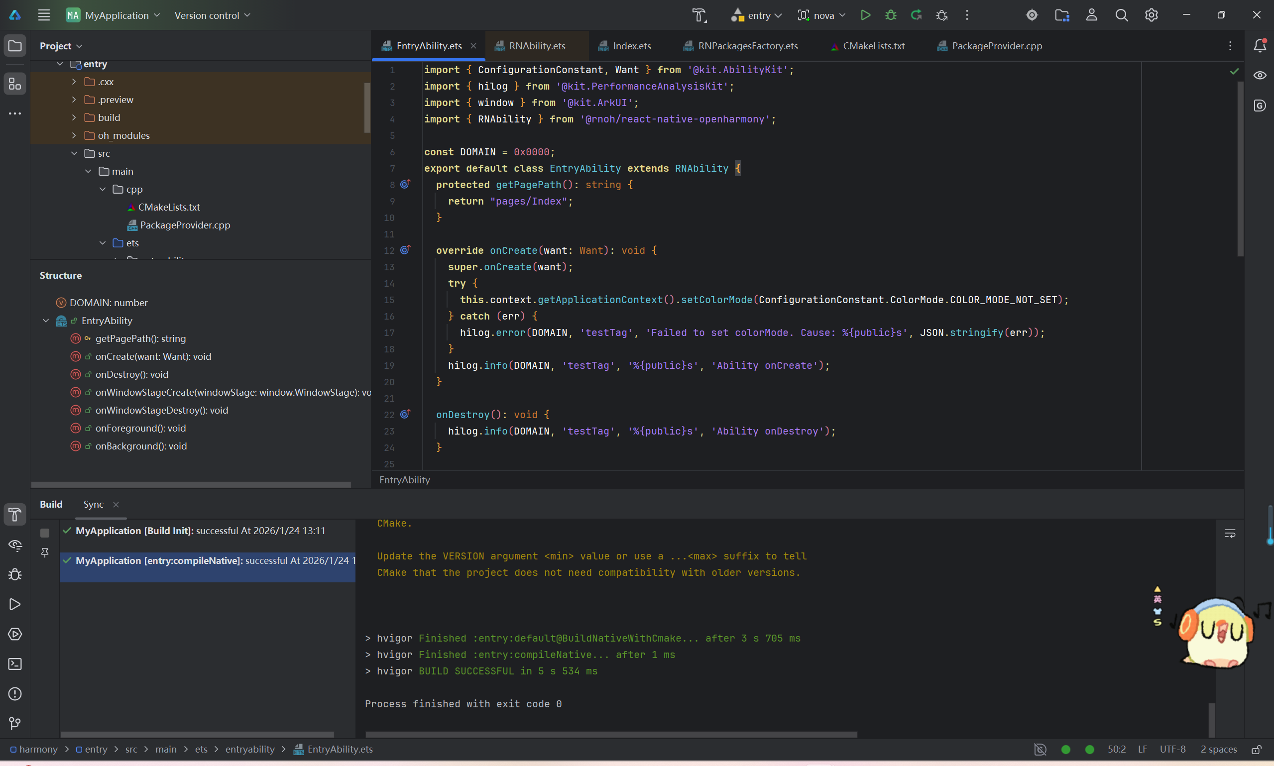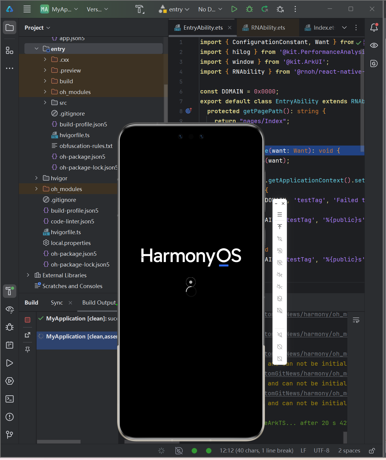 RN工程用命令行创建、鸿蒙工程按DevEco Studio步骤搭建,这部分都很顺利,难题出在模拟器运行RNOH应用上。