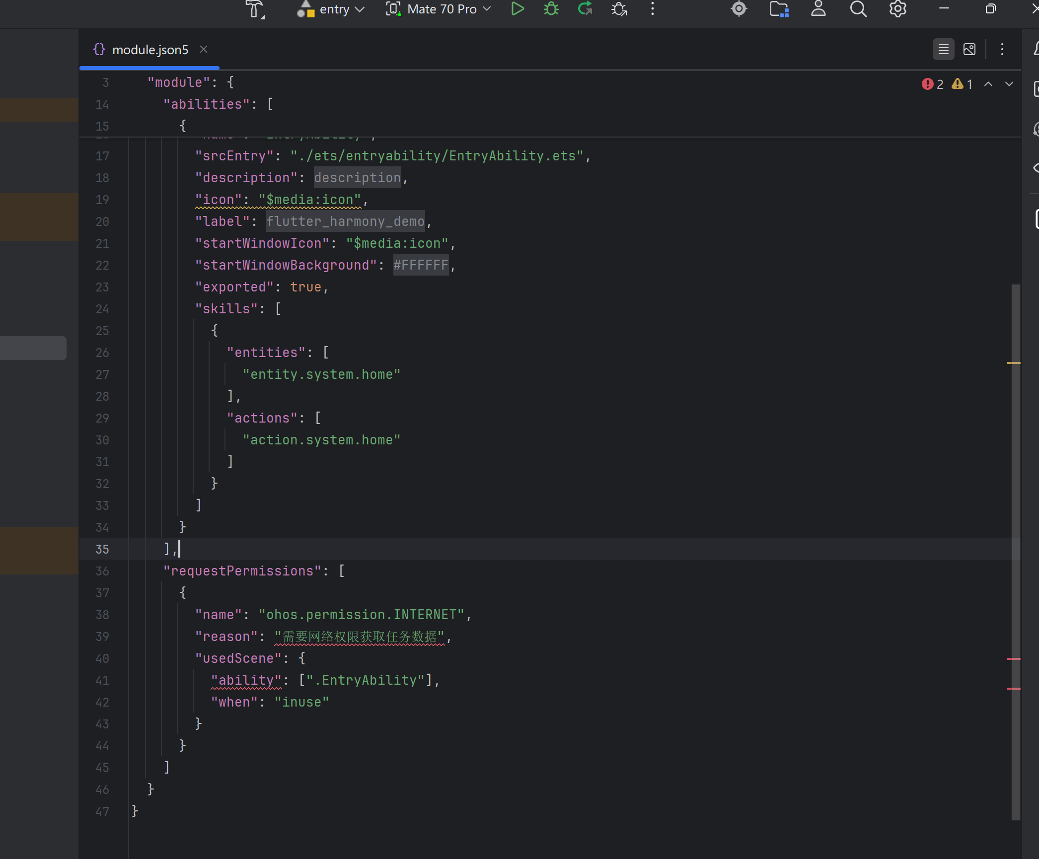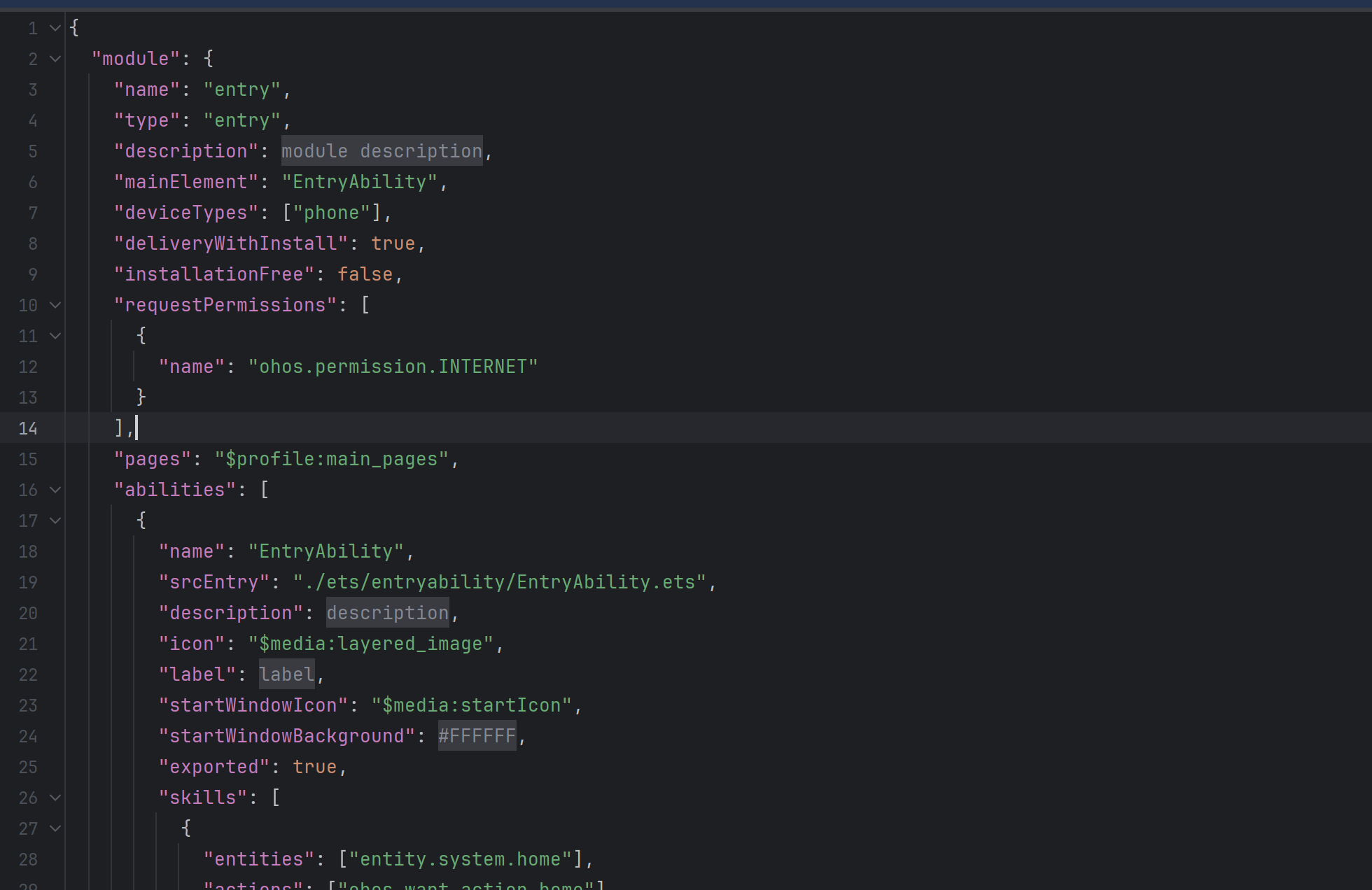 在moudle.json5里面moudle结点下面添加如上代码,注意❗️:方括号后面要加上逗号否则会报错,这个是比较重要的可以看下面我鼠标指针放在的地方。保存之后就可以访问网络了。