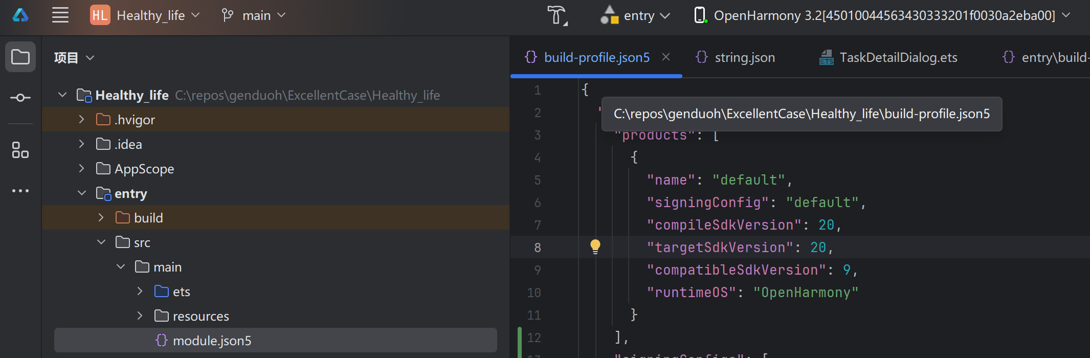 第一步:先给项目“换身份证”。在package.json里把compileSdkVersion和targetSdkVersion都改成20,同时把模块类型指定为stageMode。这一步千万别漏,不然ArkData的接口根本调不通,相当于给精装房装了老水管,白忙活一场。