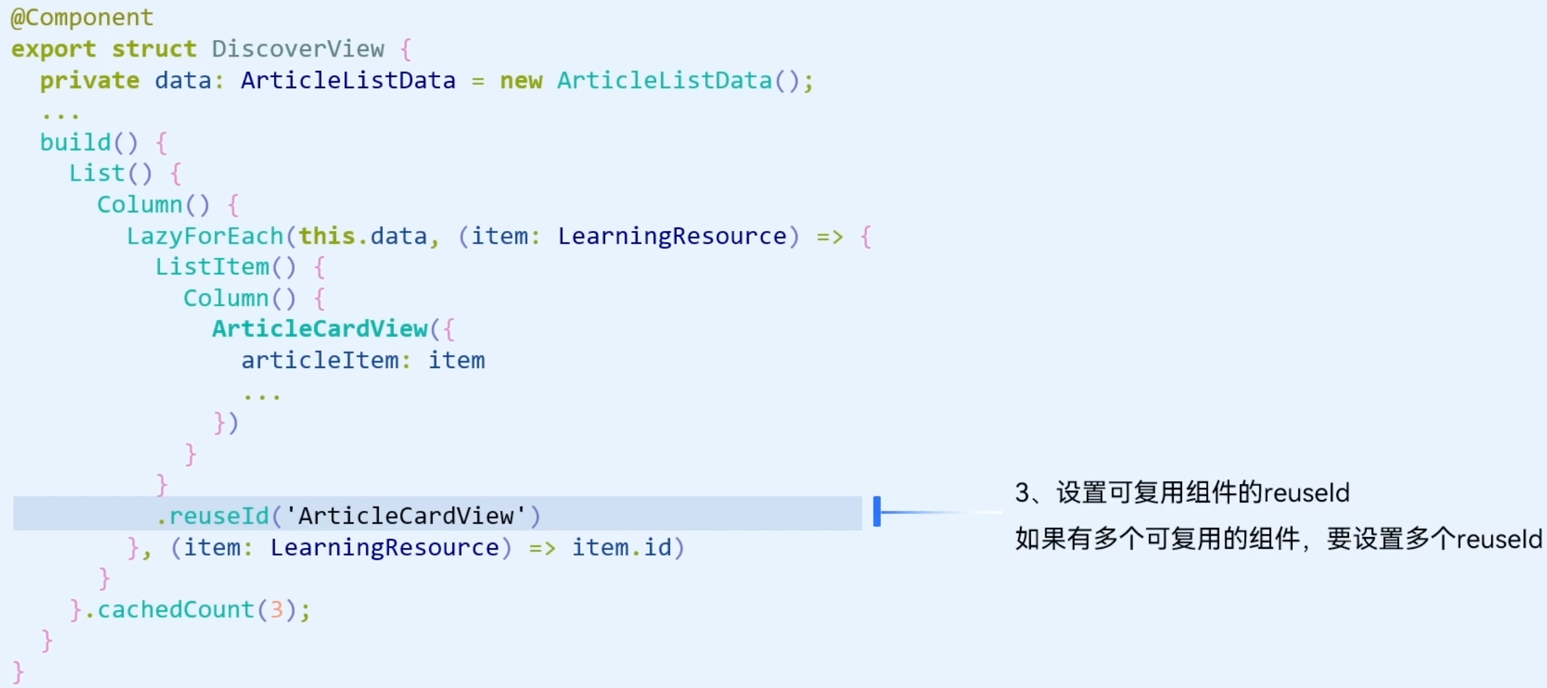 List组件设置.cachedCount(数值)属性,用于预加载屏幕可视区域外的列表项,以提升快速滑动时的体验。 -