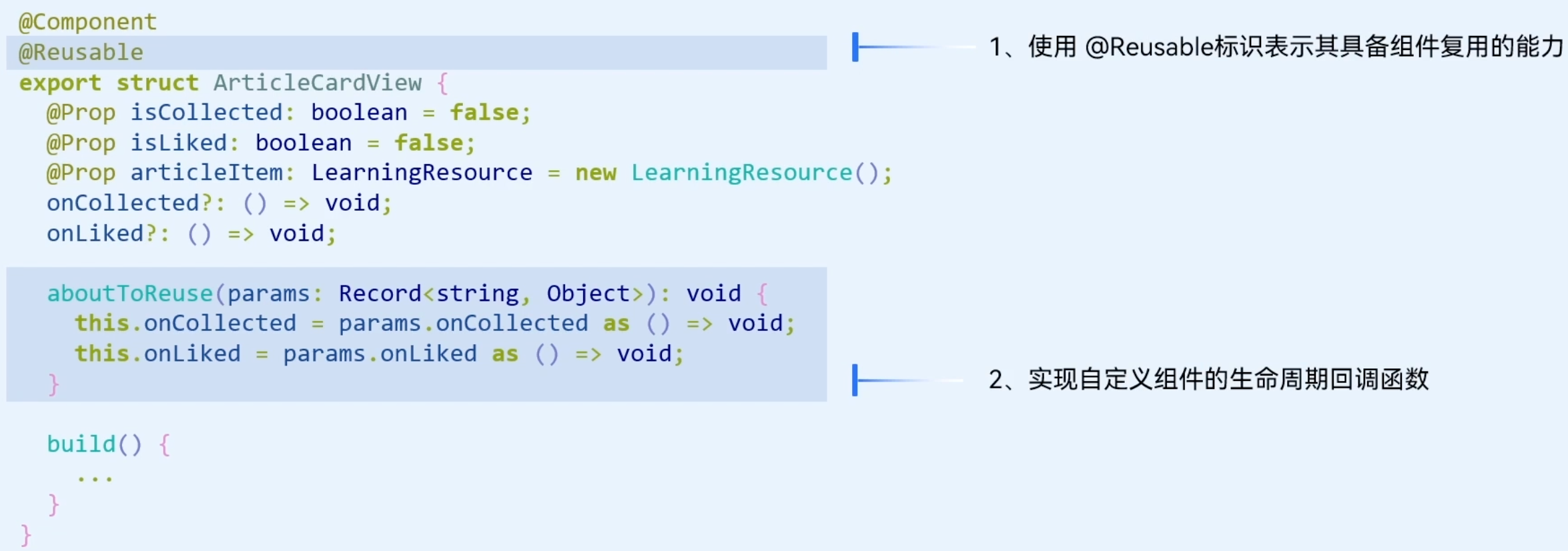 - 组件复用:提供可复用组件对象的缓存资源池,通过重复使用已经创建过并缓存的组件对象,降低相同组件短时间内频繁创建和销毁的开销,提升组件渲染效率。