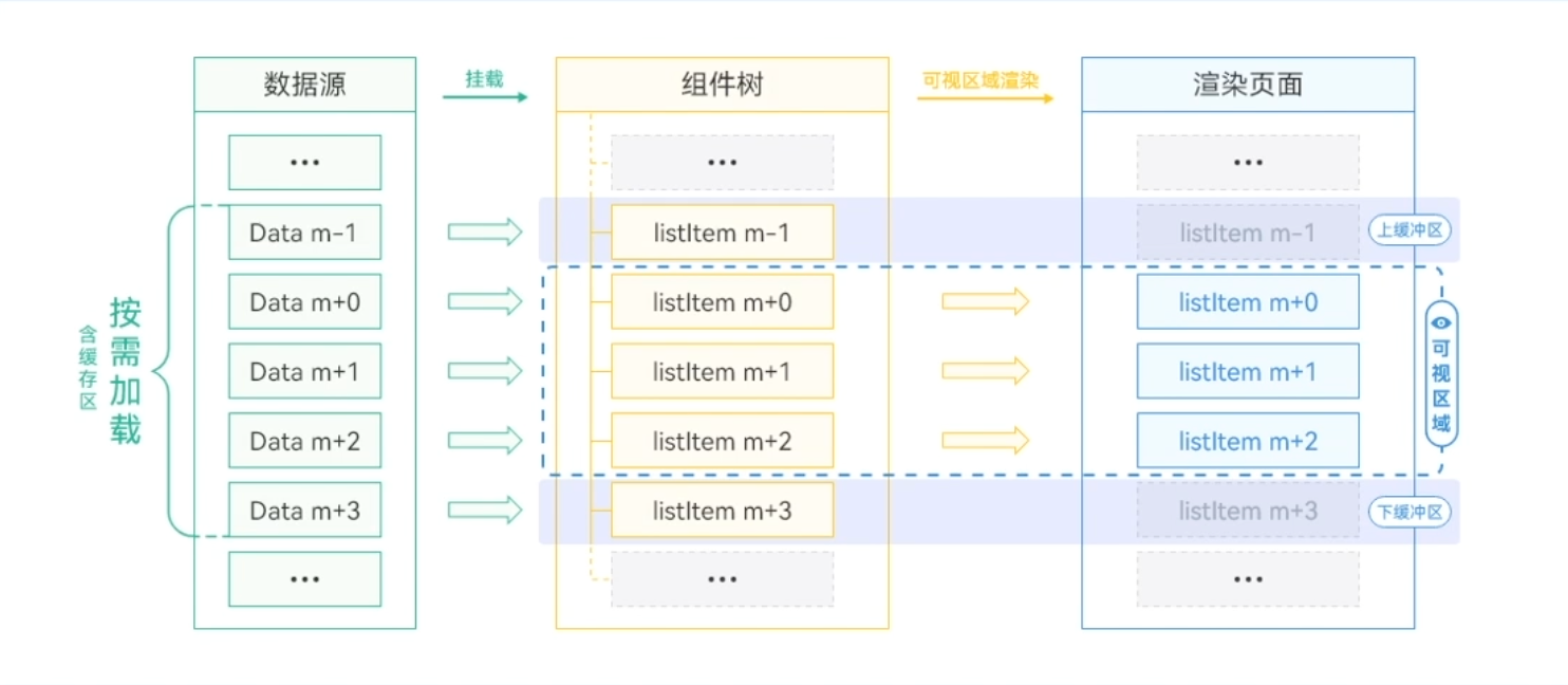 针对长列表加载这一场景,对列表渲染时间、页面滑动帧率、应用内存占用等方面带来优化,提升性能和用户体验的手段有如下4种: