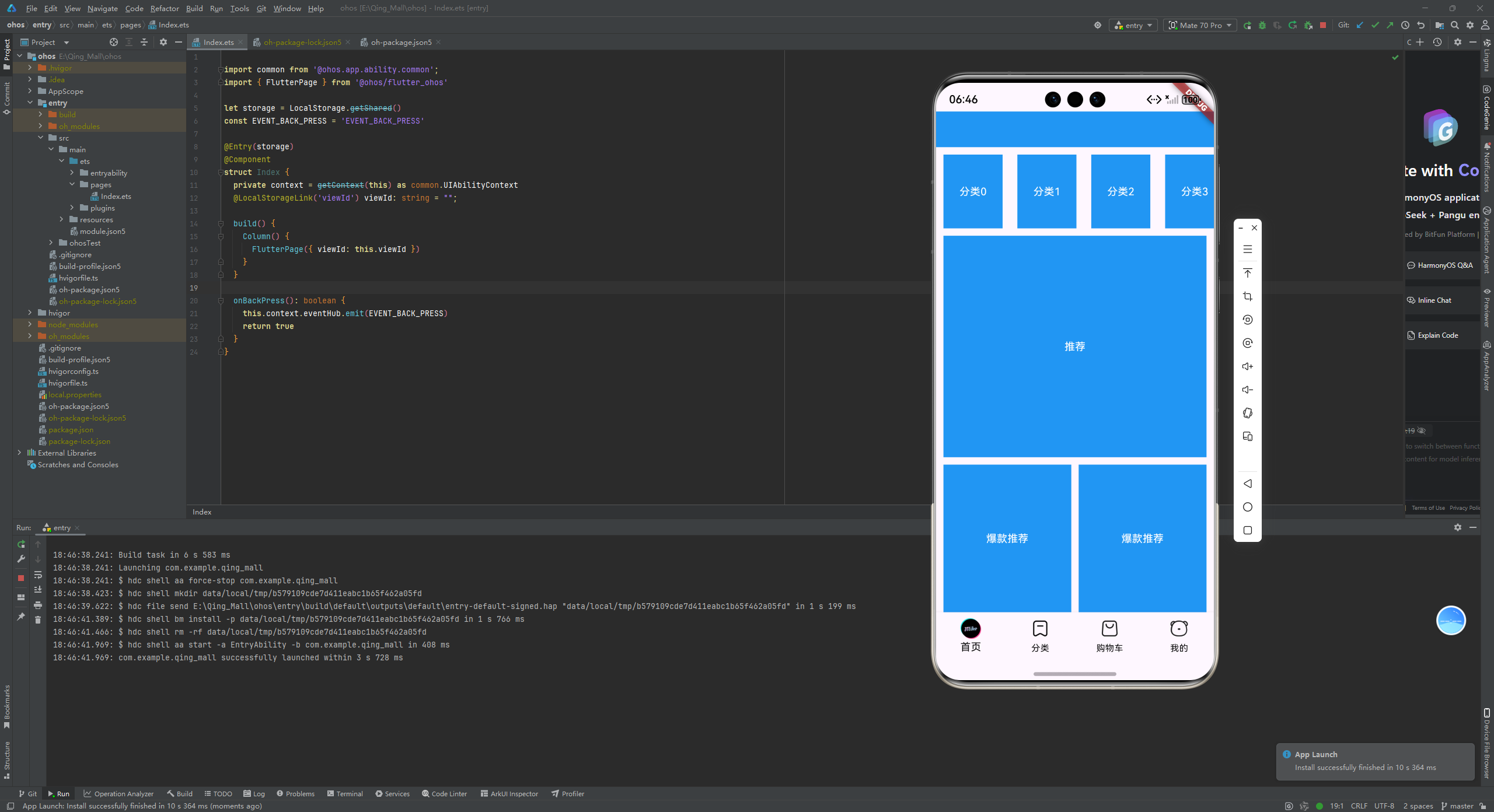 完成上述代码后运行到鸿蒙模拟器效果如下,可以看到分类的轮廓已经出来了。