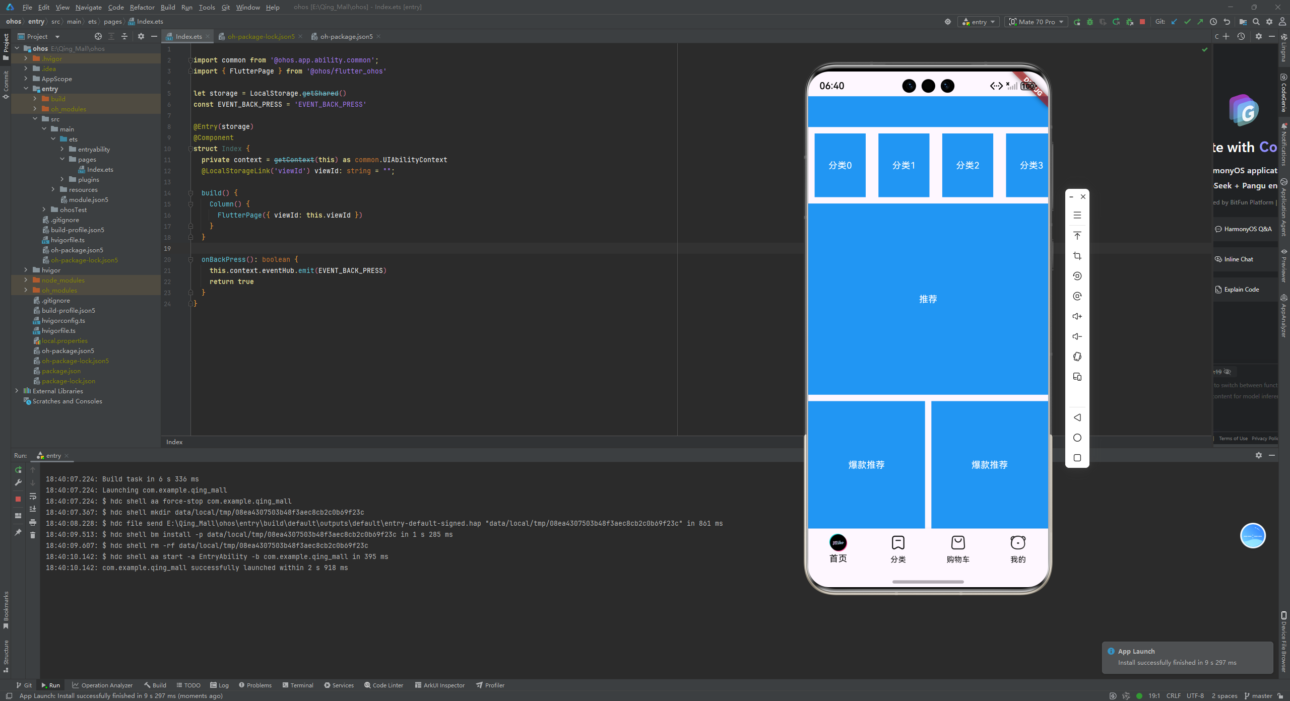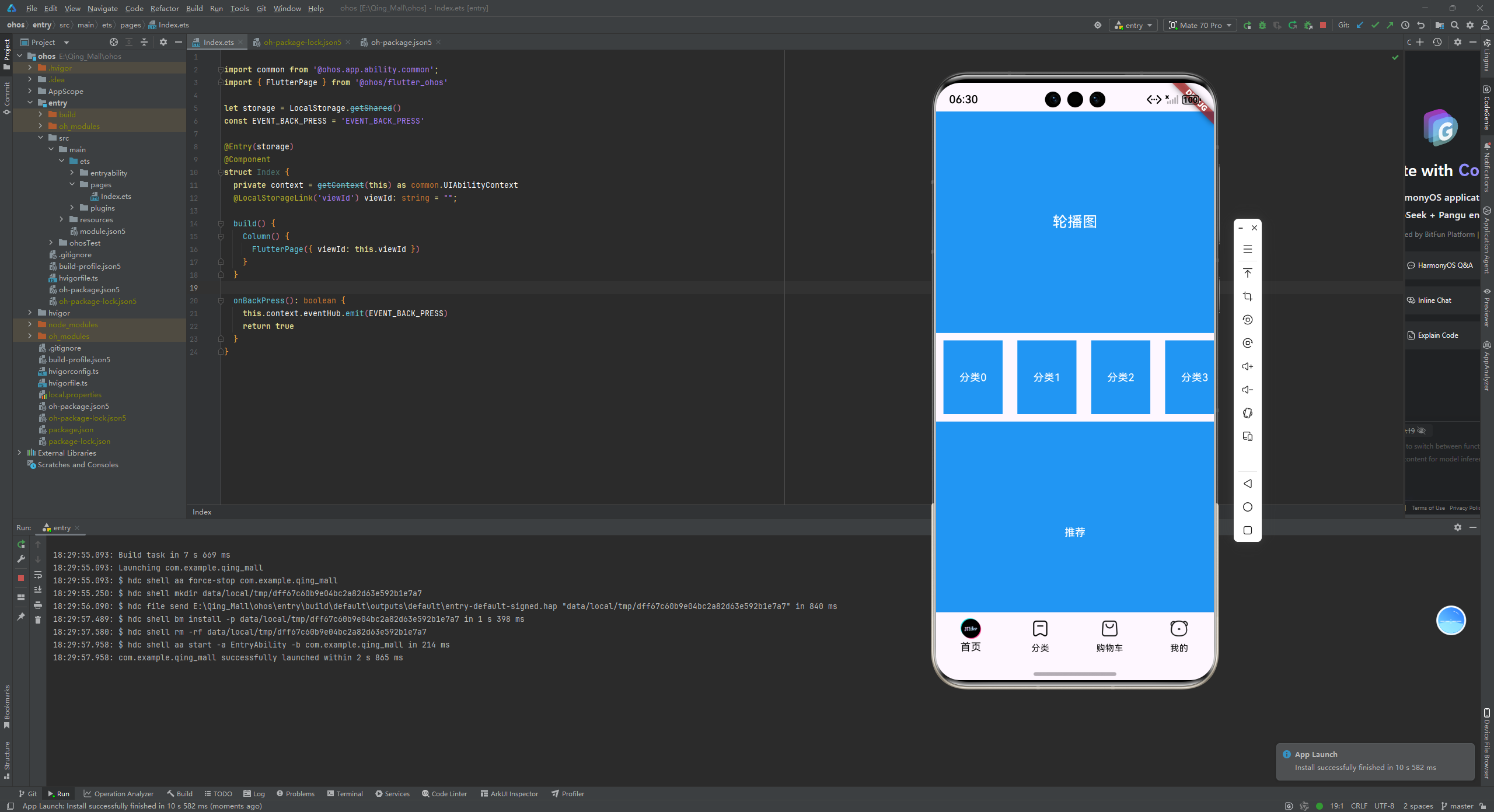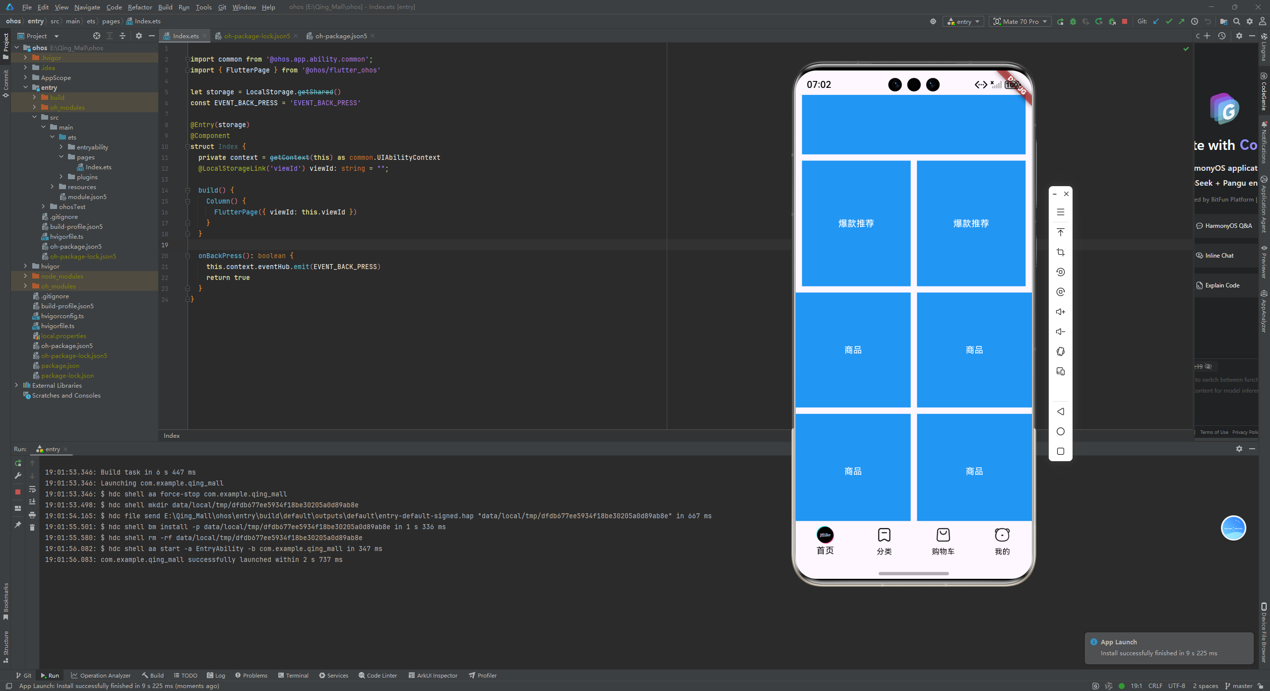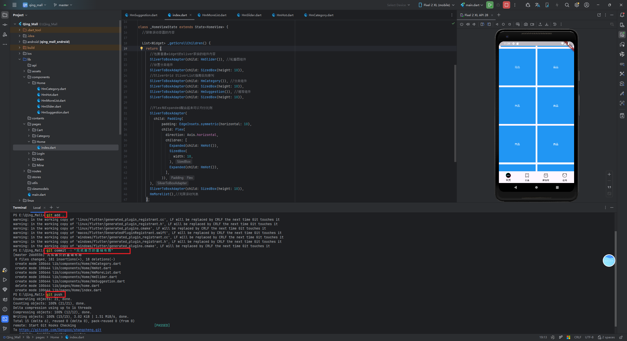 通过本文我们完成了组件化的设计。我们将首页拆分为多个独立模块(轮播图、分类、推荐等),每个组件具备独立状态管理能力,使用StatefulWidget实现动态交互。这种架构模式提升了代码复用性和维护效率,符合Flutter声明式UI的开发理念。后续我们将调用API接口渲染到首页的UI上,展示真实的数据。如果有疑问,可以在评论区留言,看到会回答。最后欢迎加入开源鸿蒙跨平台社区:t=PBP8青商城 -