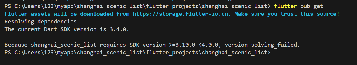 这是一个不兼容错误,需要修改 pubspec.yaml 里的 Dart SDK 版本限制,才能让依赖正常加载。