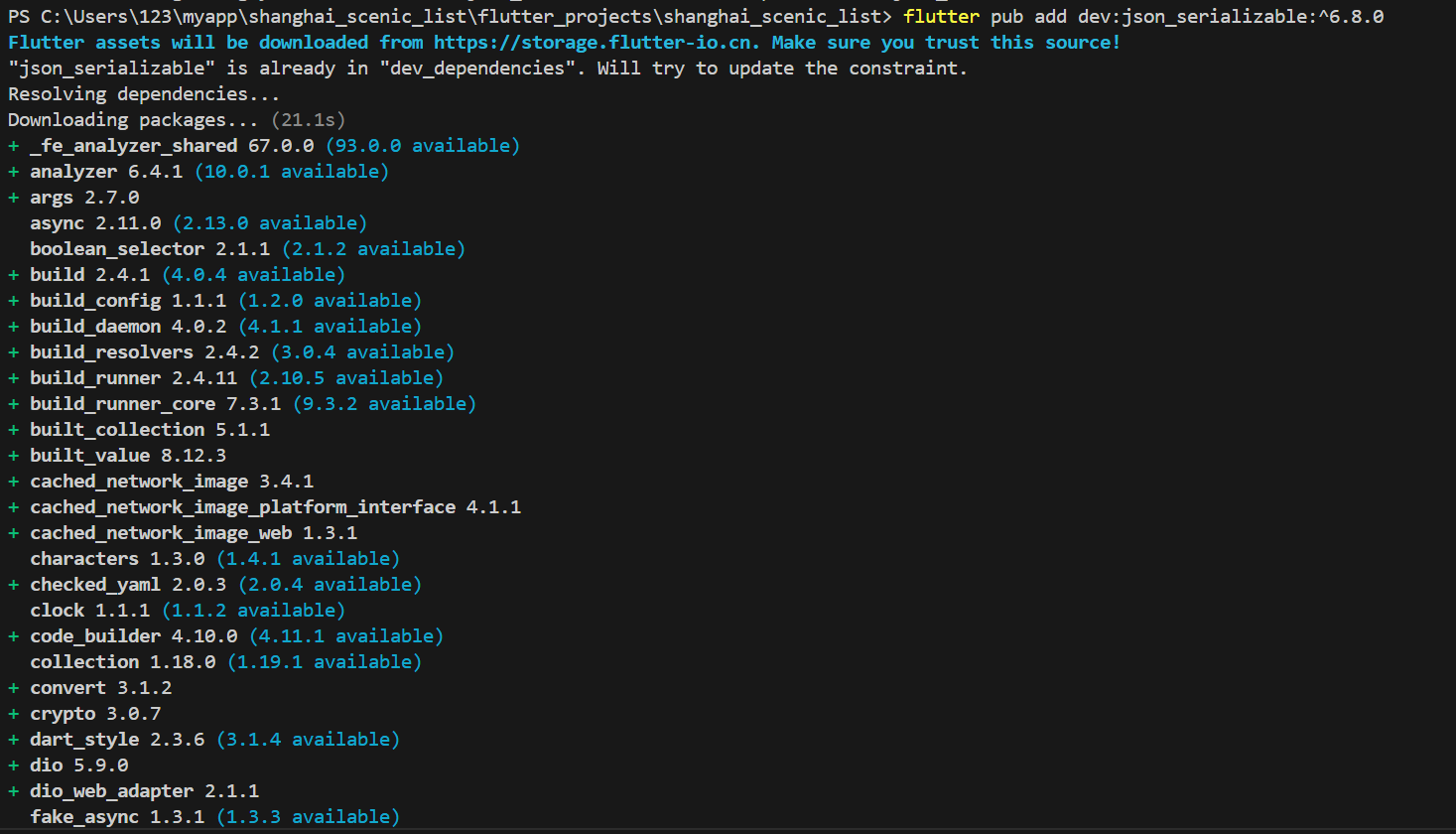flutter pub add dev:json_serializable:^6.8.0