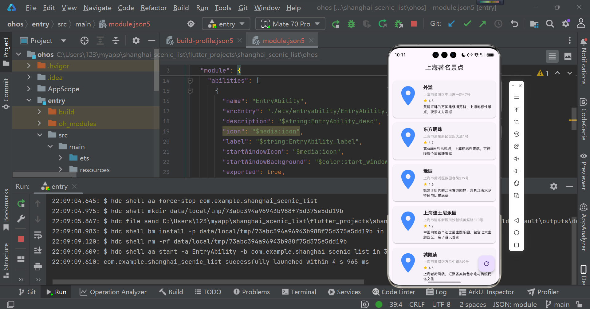 随着开源鸿蒙(OpenHarmony)生态的持续发展,跨平台技术在鸿蒙设备上的应用场景日益广泛。本文以 "上海著名景点清单列表" 为实际需求,无需复杂代码堆砌,聚焦开发思路与核心流程,详解如何通过 Flutter 技术栈快速实现网络数据拉取、列表展示及鸿蒙设备适配,帮助开发者高效完成跨平台应用落地。