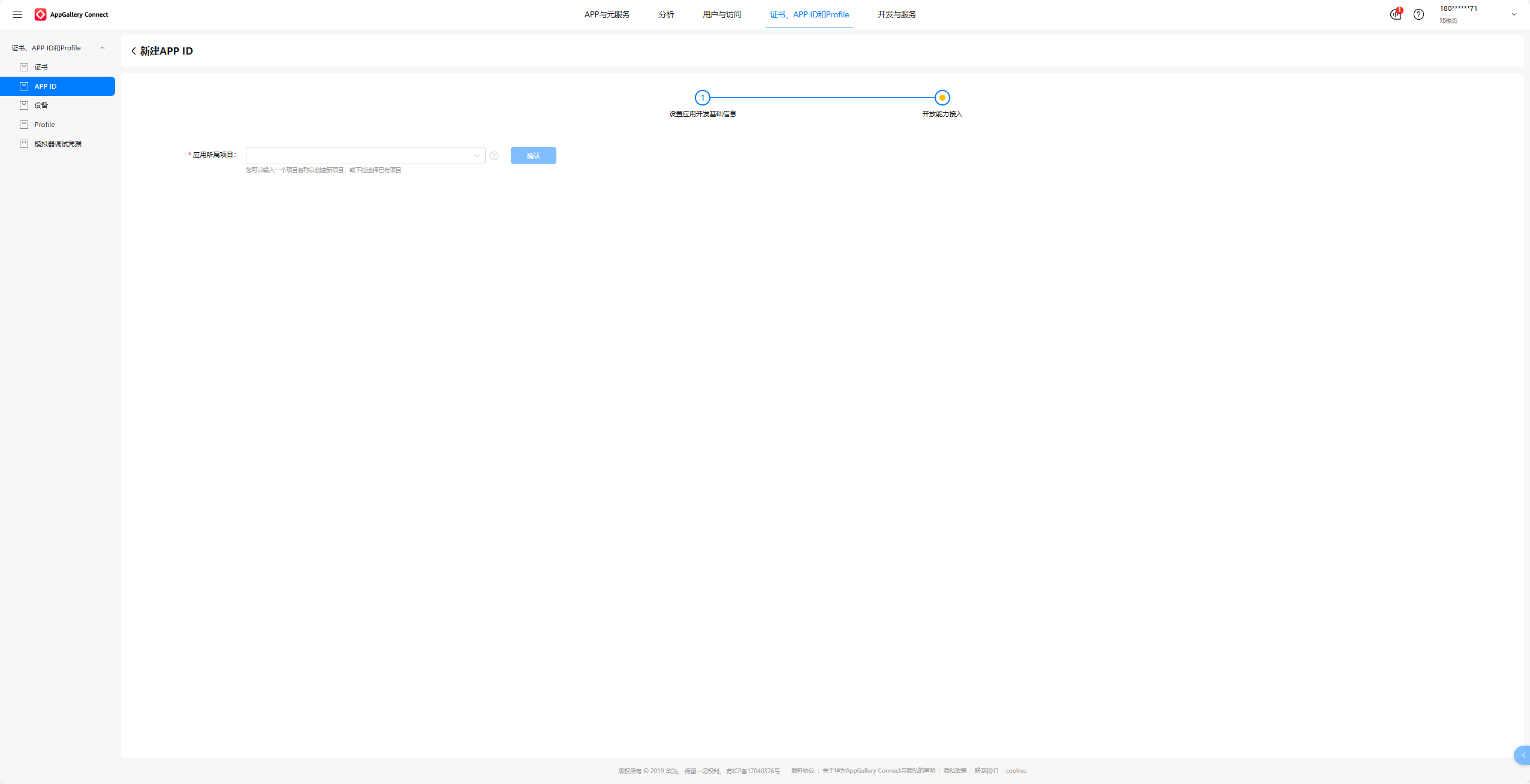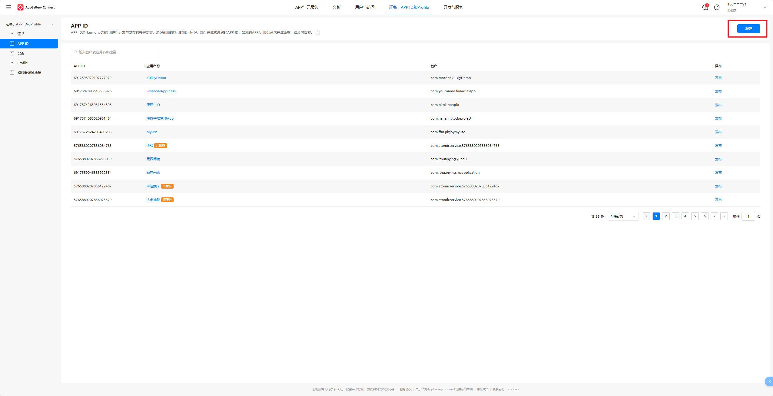 选择APP ID然后点击右上角的新建