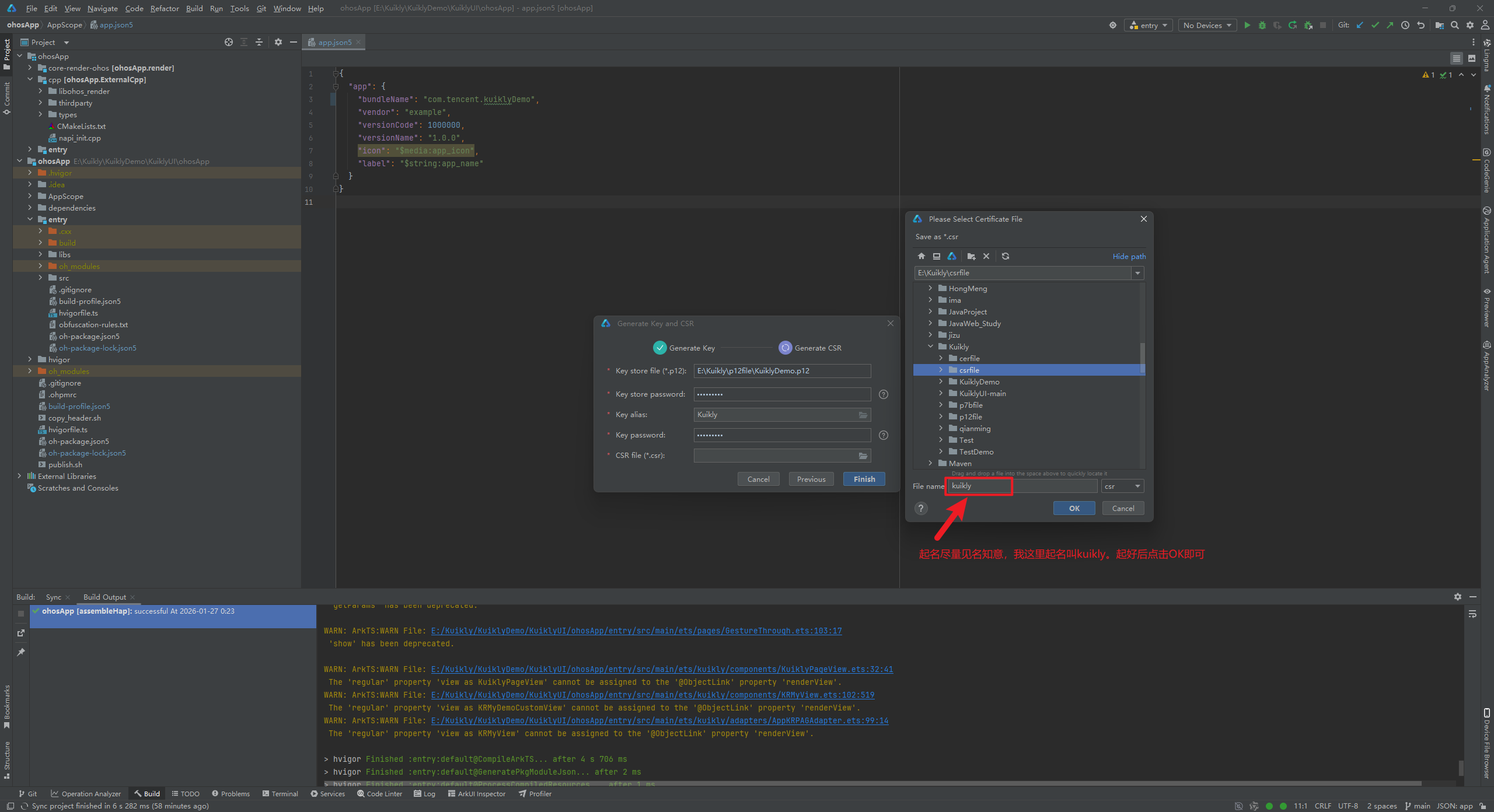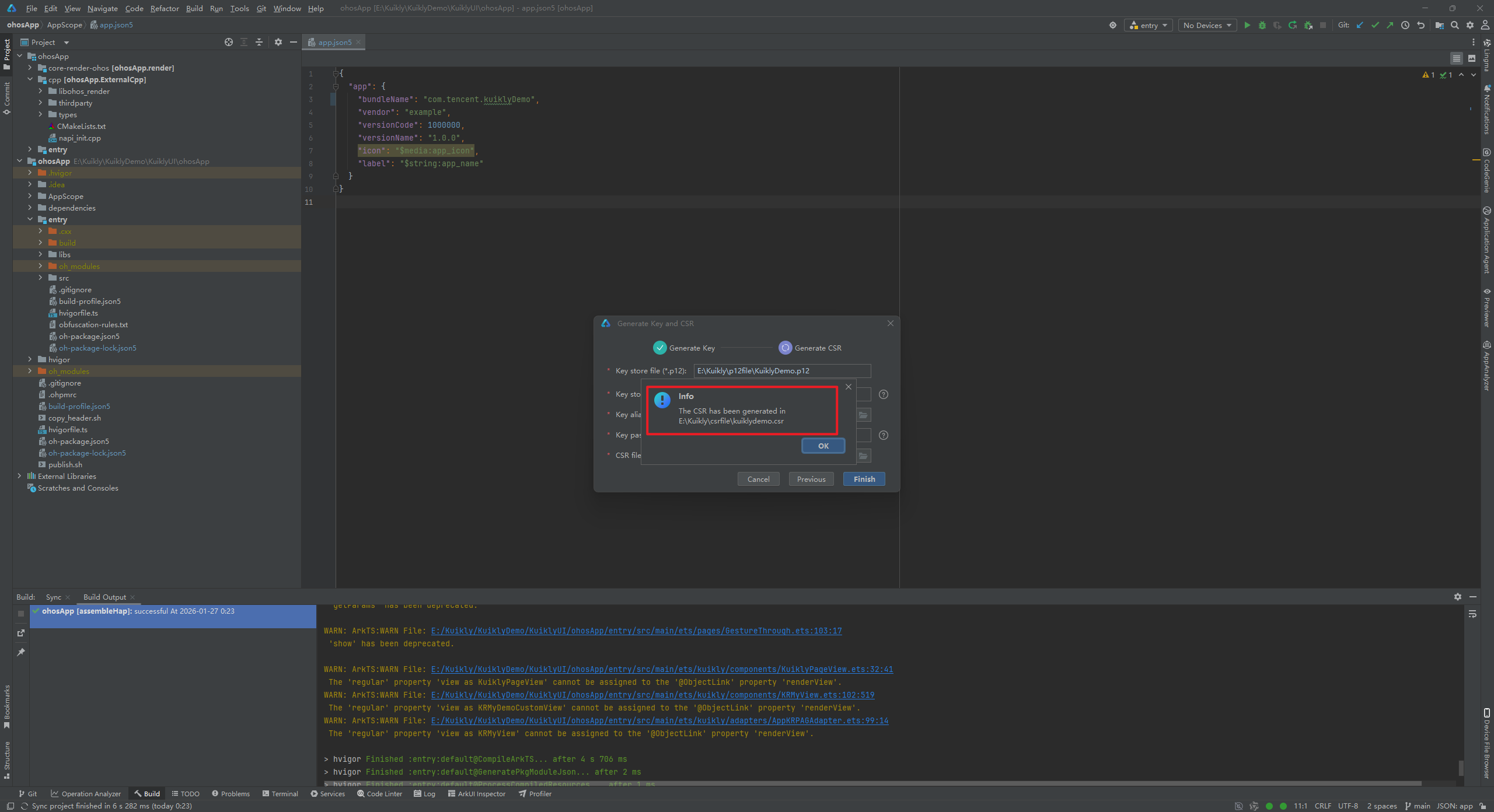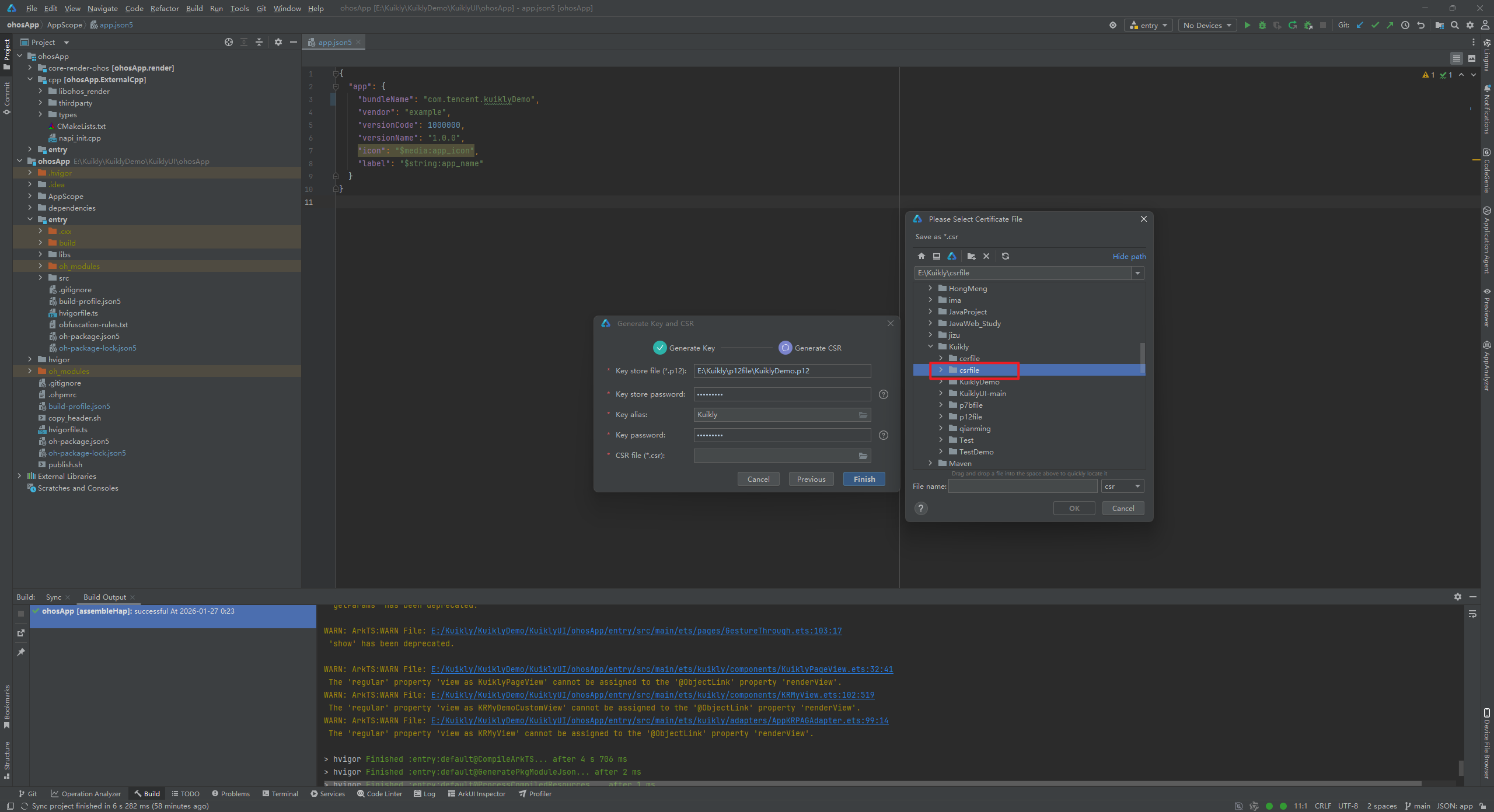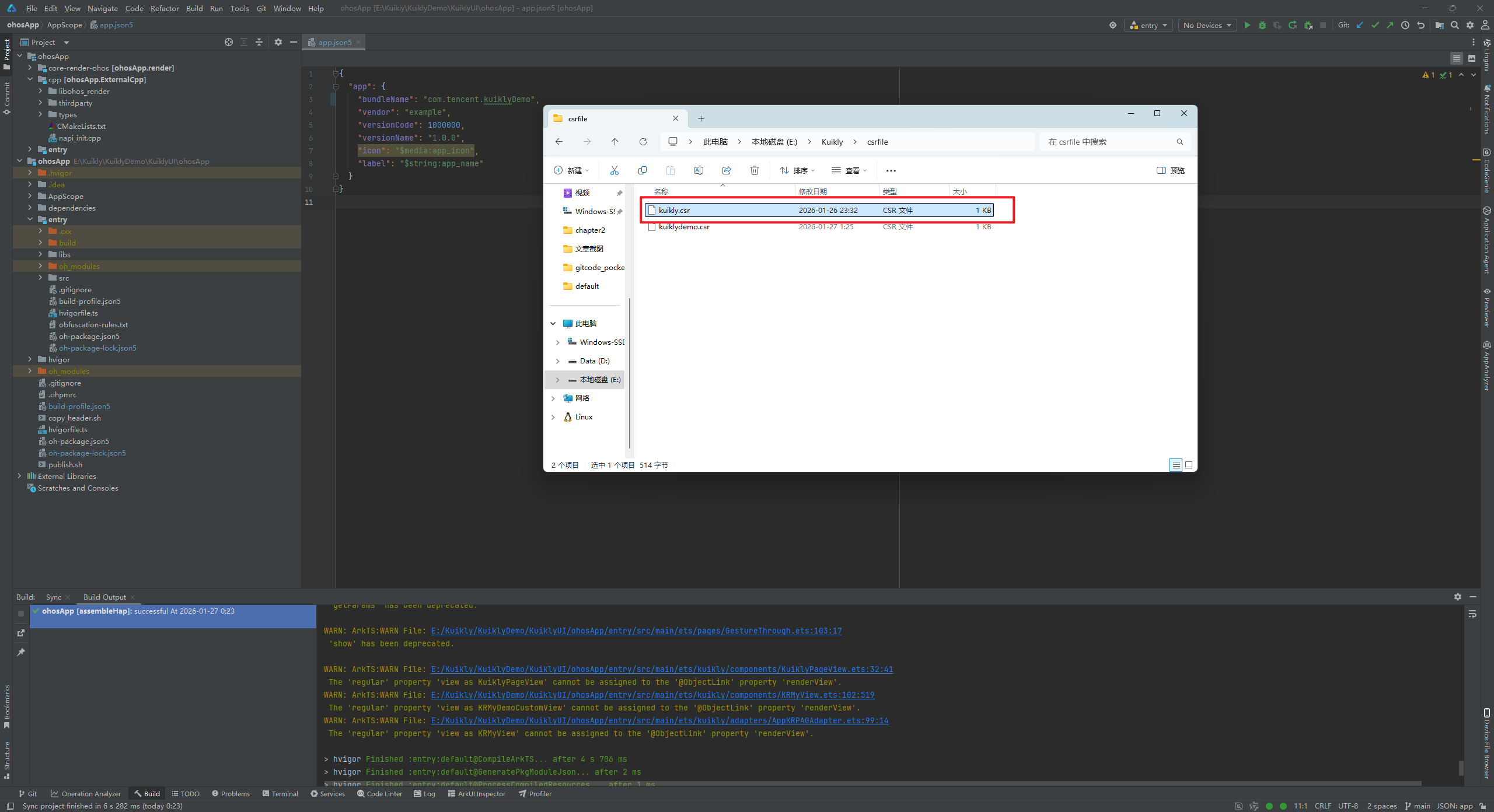 这里提示构建成功了,此时我们得到了kuikly.csr文件