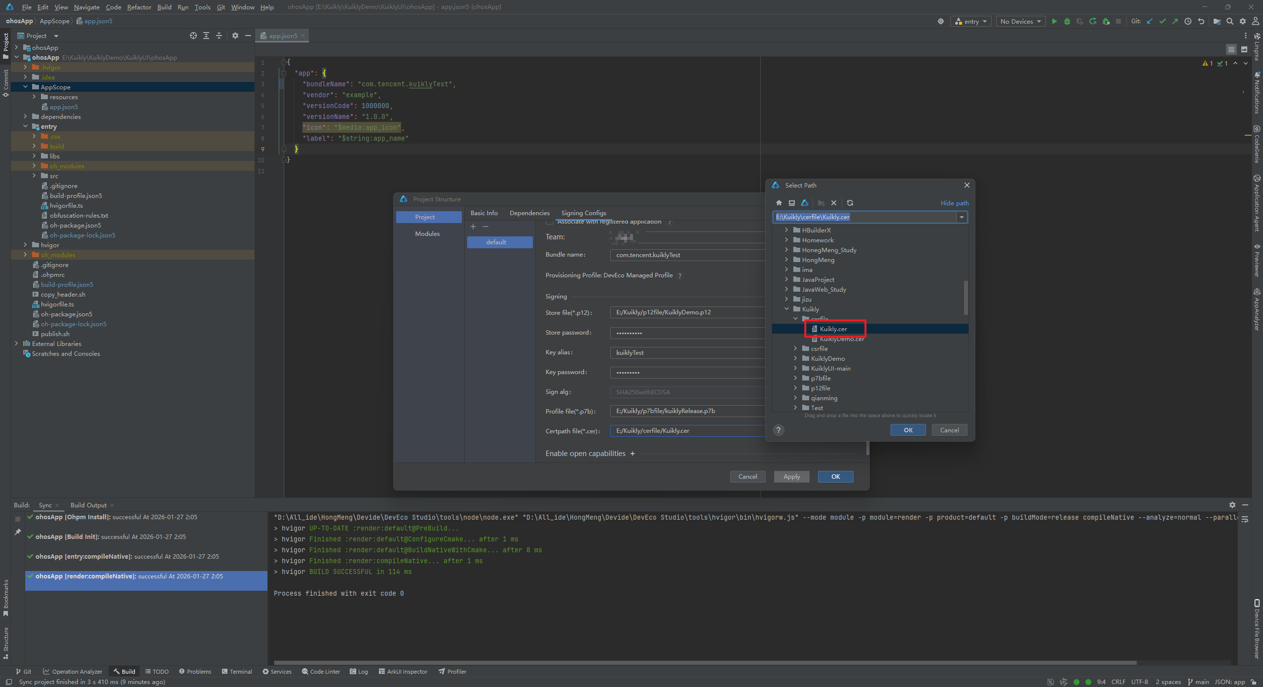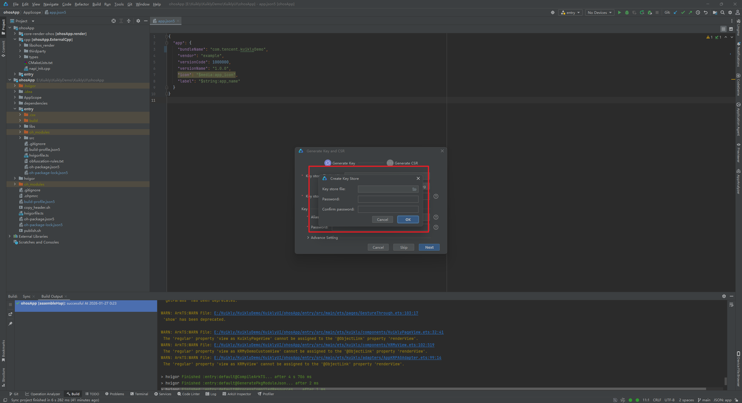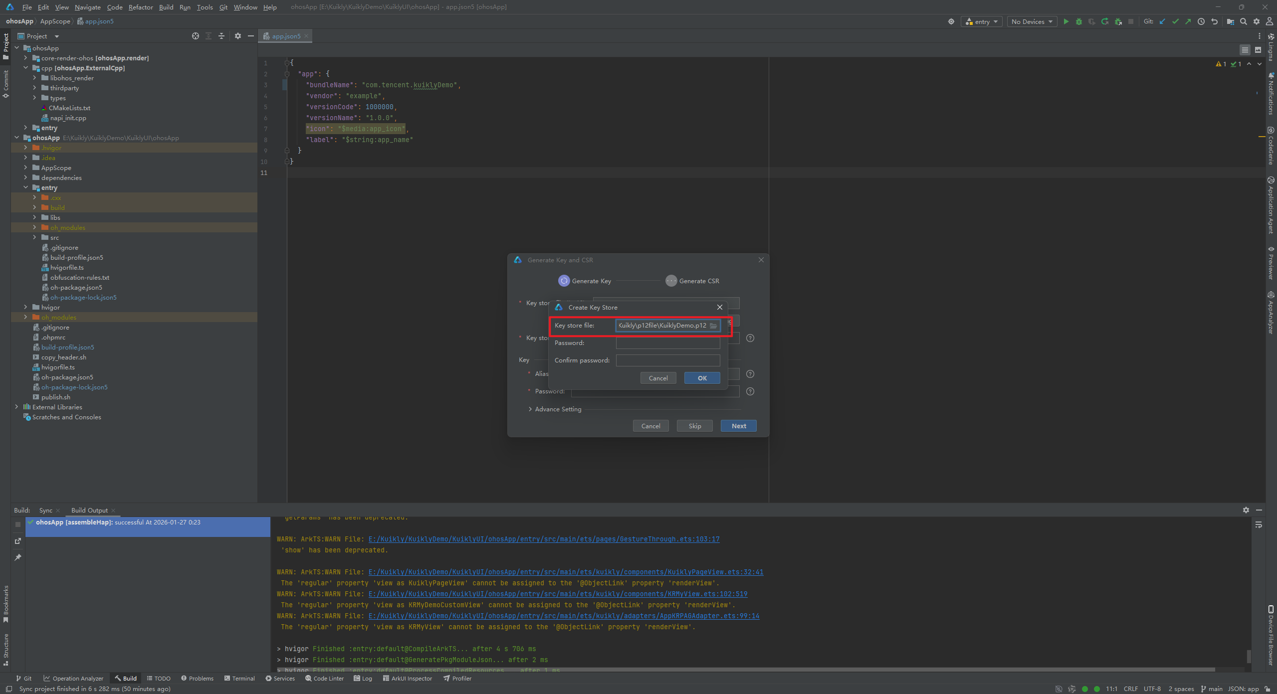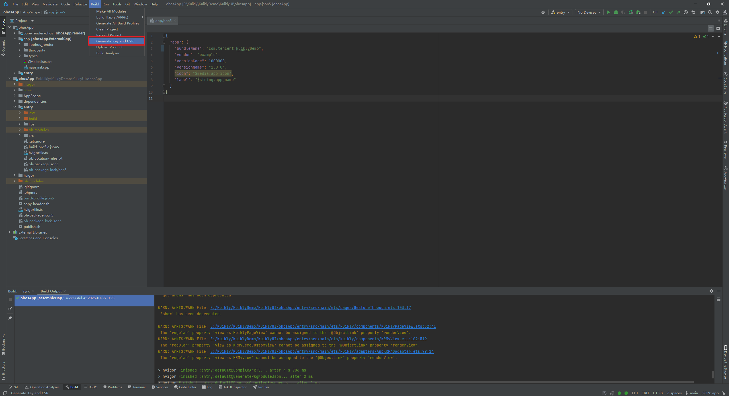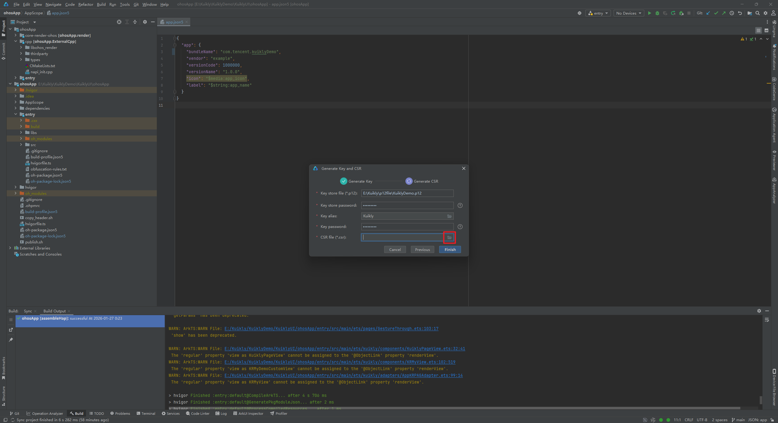 这里提示构建成功了,此时我们得到了kuikly.csr文件
