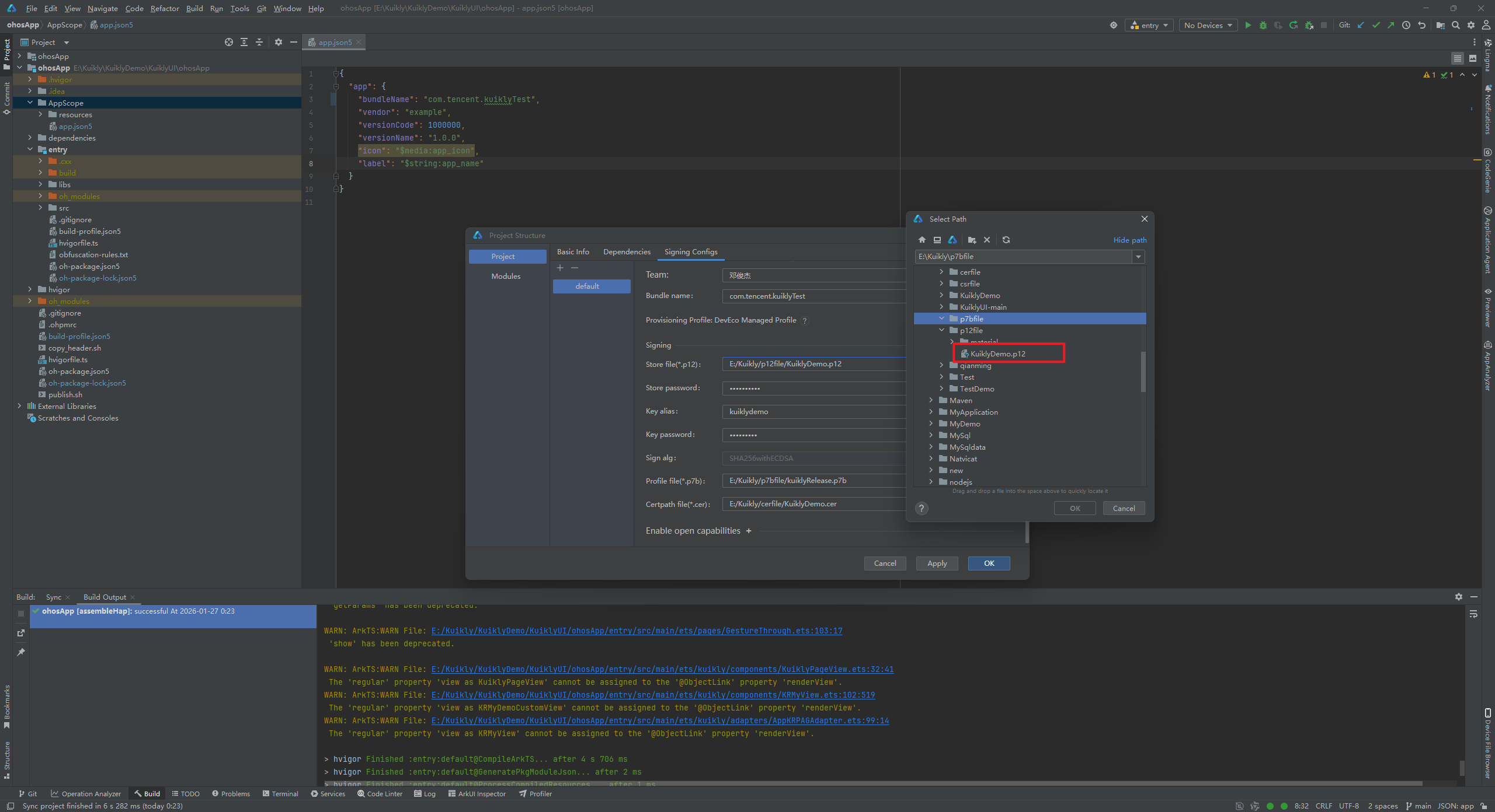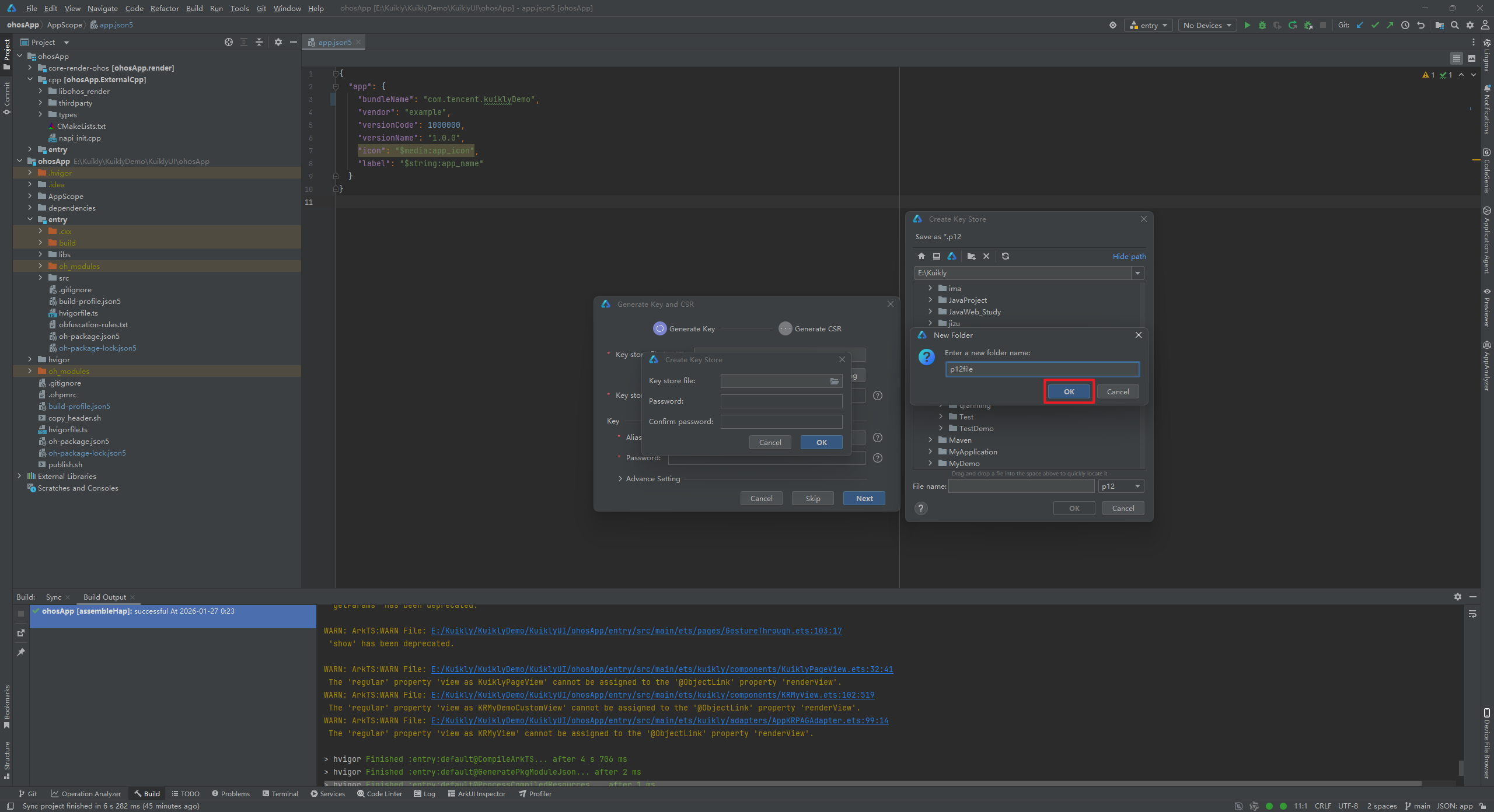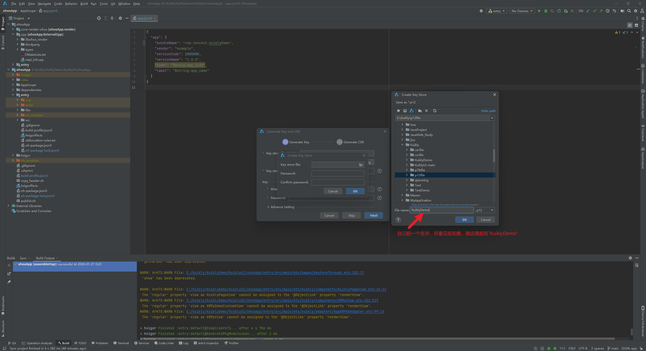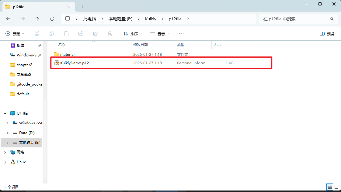 执行完以上步骤后我们就得到了KuiklyDemo.p12文件