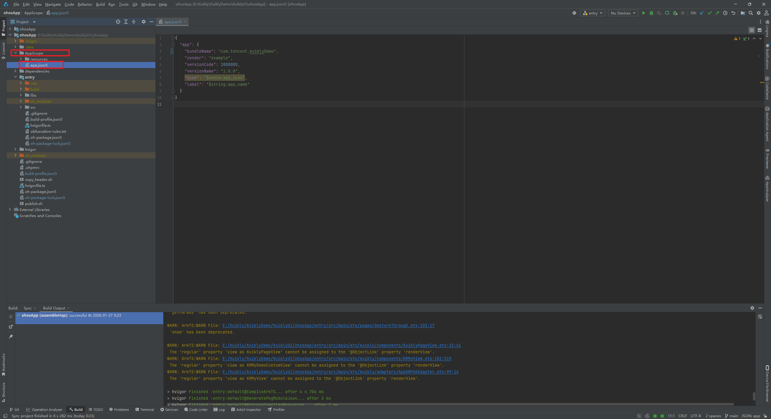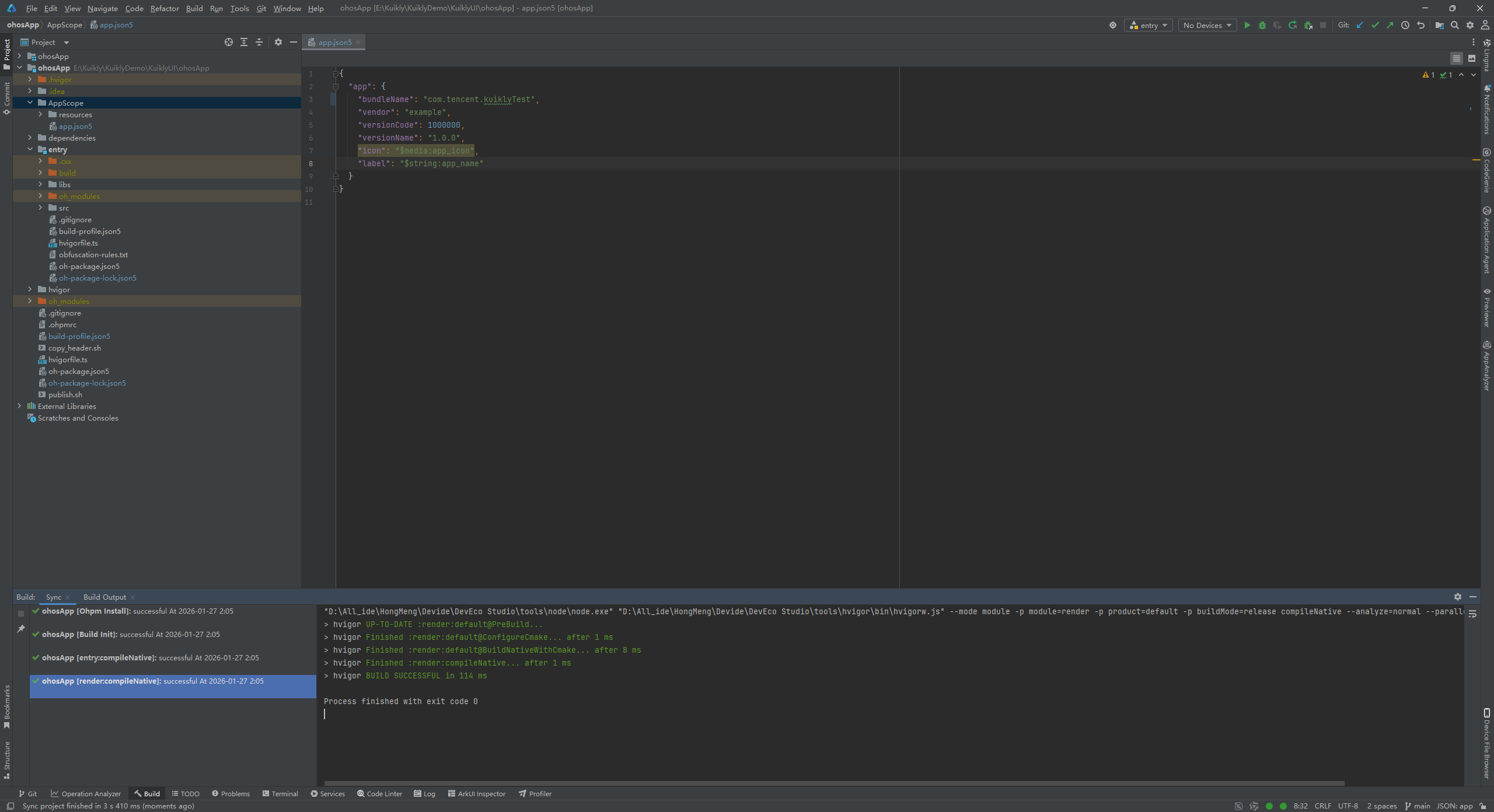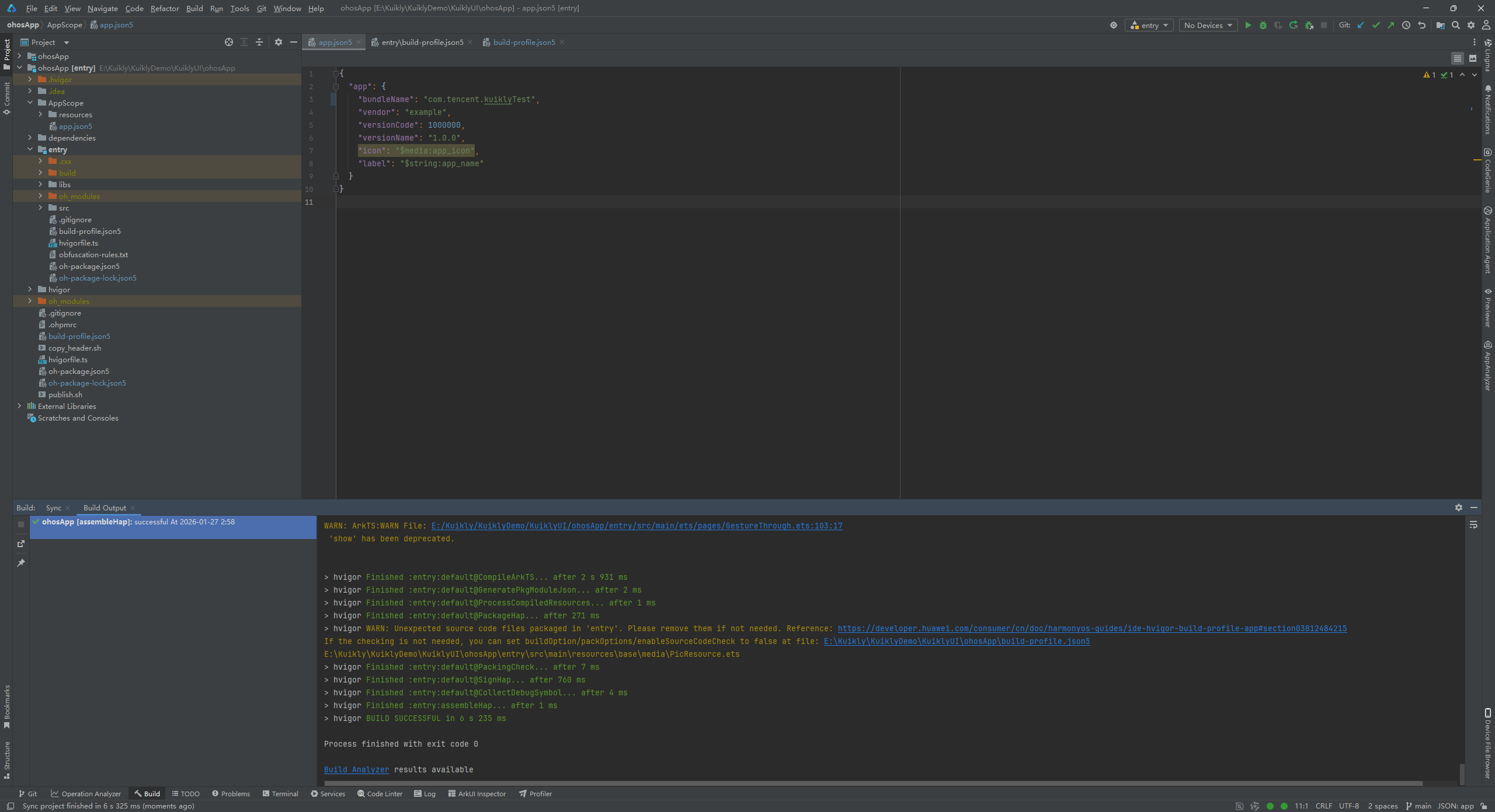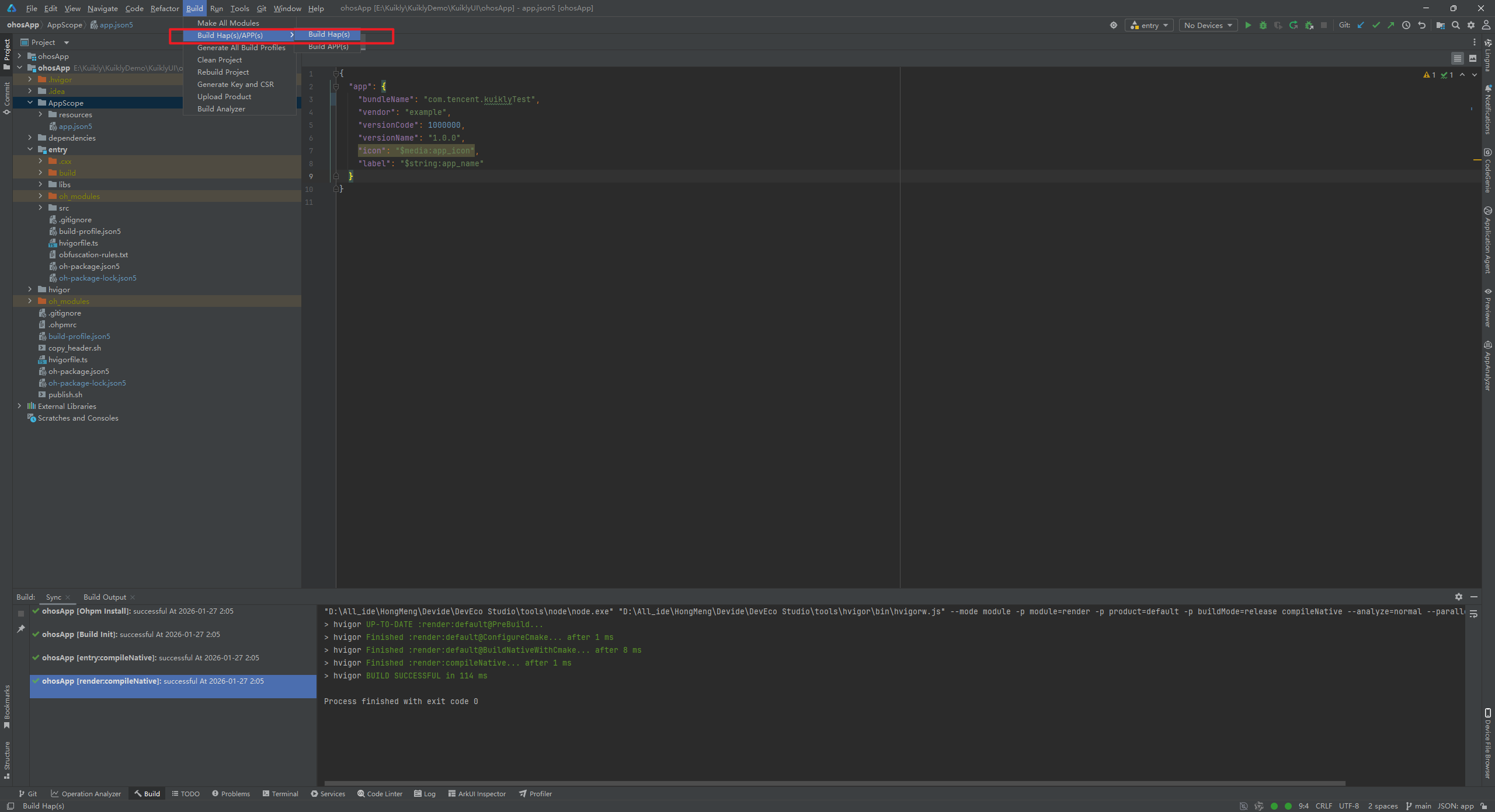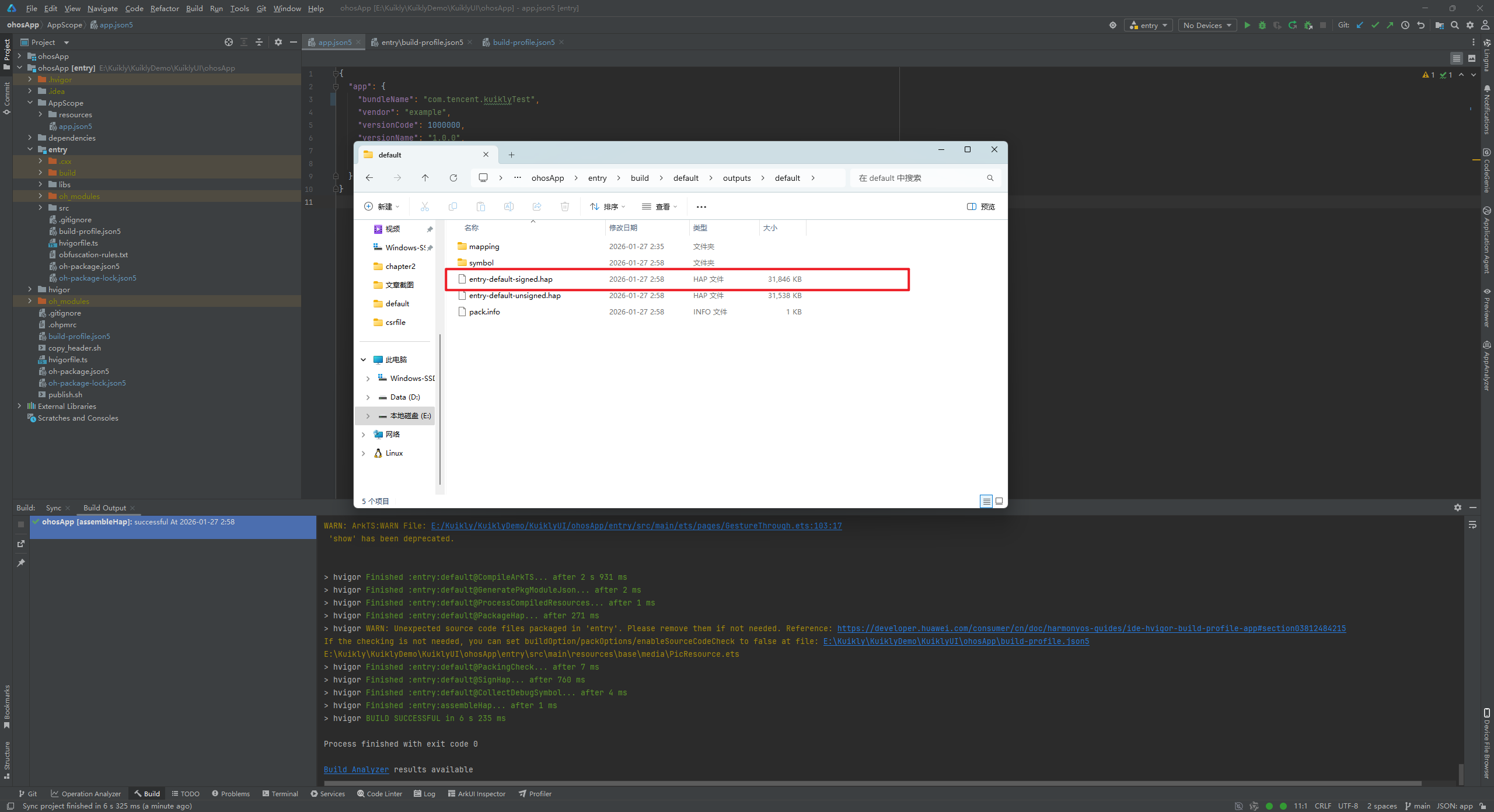 修改完上述错误后点击OK,重新构建,成功构建出了Hap包。