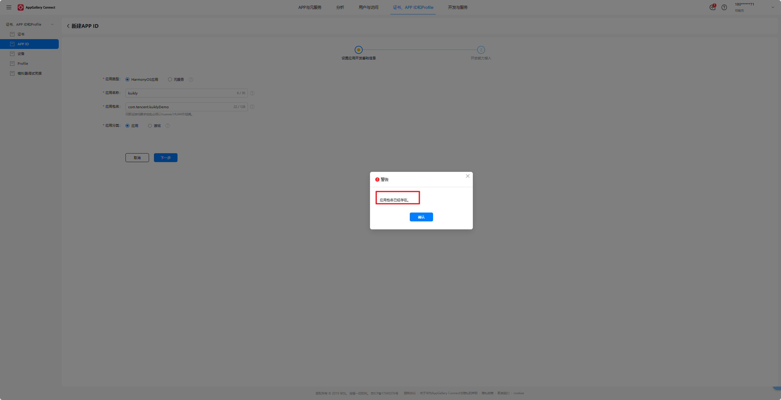 可以看到我们的kuikly的APP ID已经新建出来了。