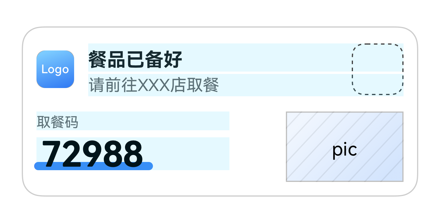 // 2. 创建一个取餐实况窗(强调文本模板)