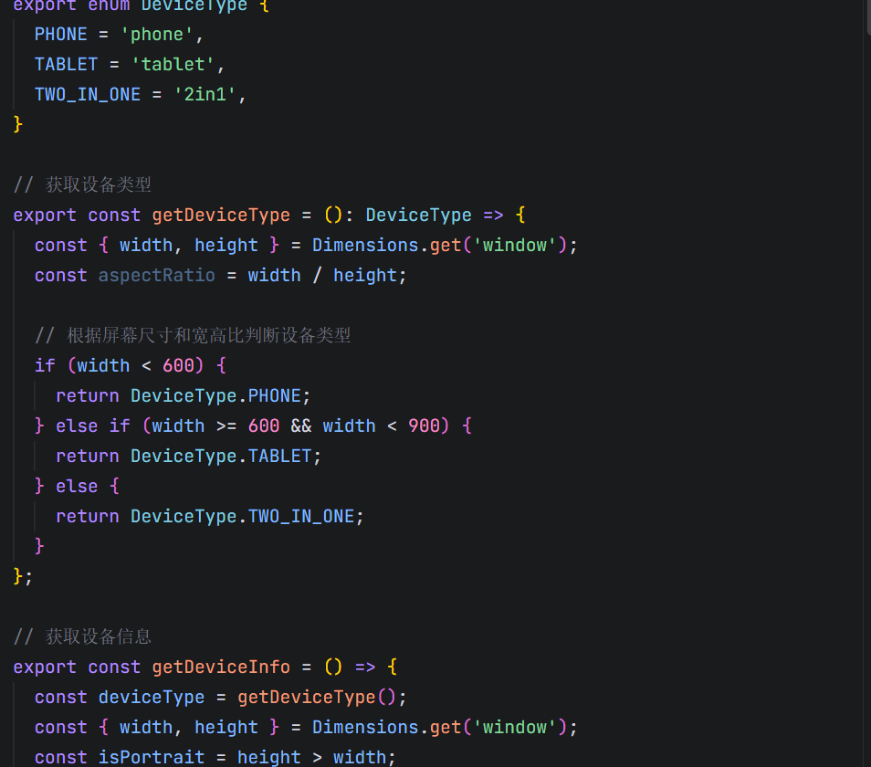 我创建了专门的设备适配工具 src/utils/device.ts ,提供完整的设备适配能力: