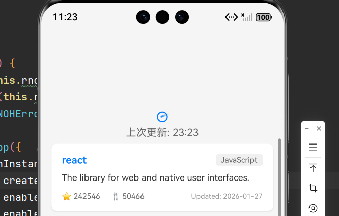 我的项目是基于React Native技术栈的开源鸿蒙跨平台应用,主要功能是展示GitHub仓库列表。项目需要在不同类型的开源鸿蒙设备上运行,包括手机、平板和2in1设备。核心需求